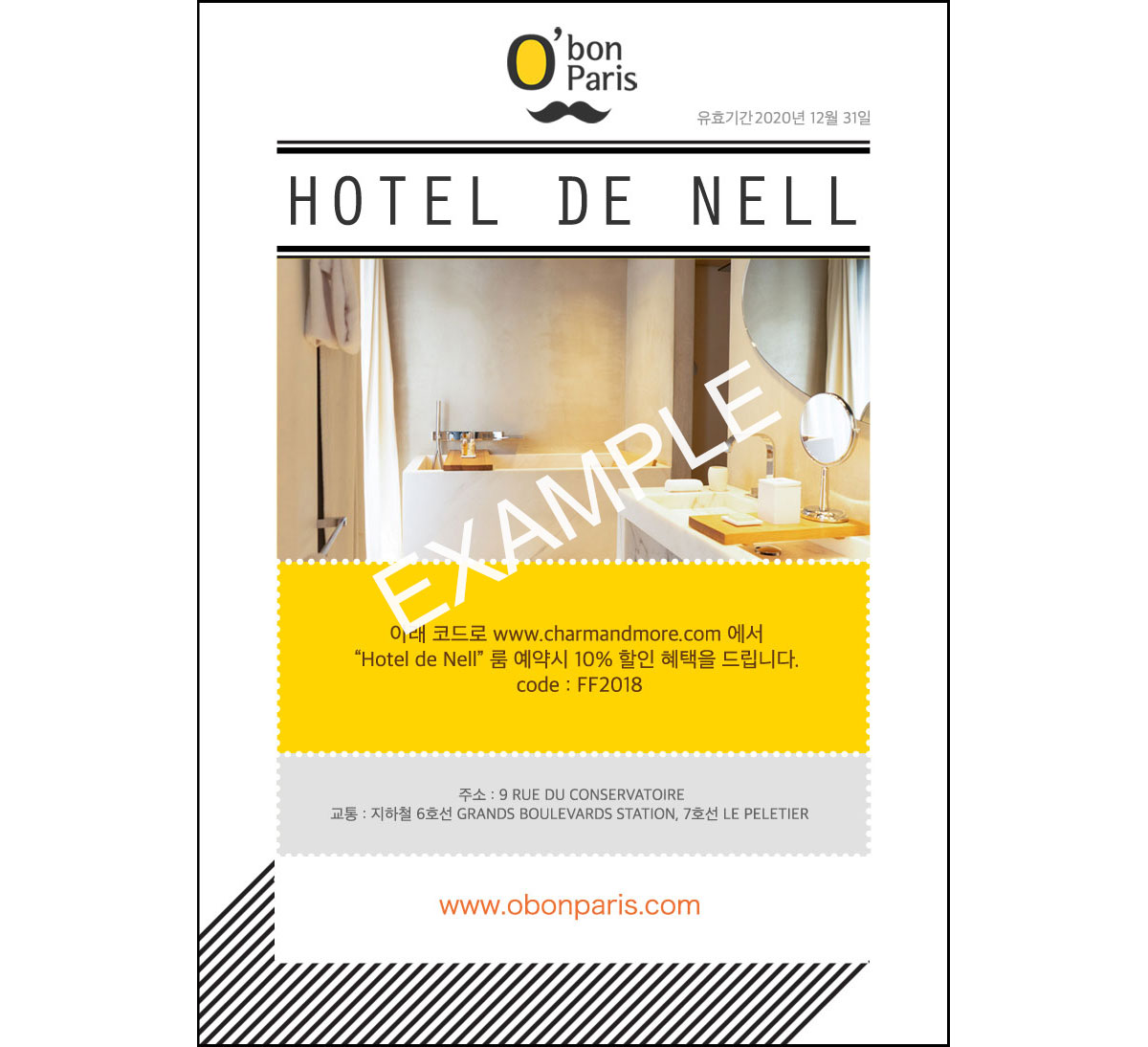 .파리의 중심과 매우 가까운 9구에 위치한 깔끔하고 매력적인 호텔, HOTEL DE NELL.
