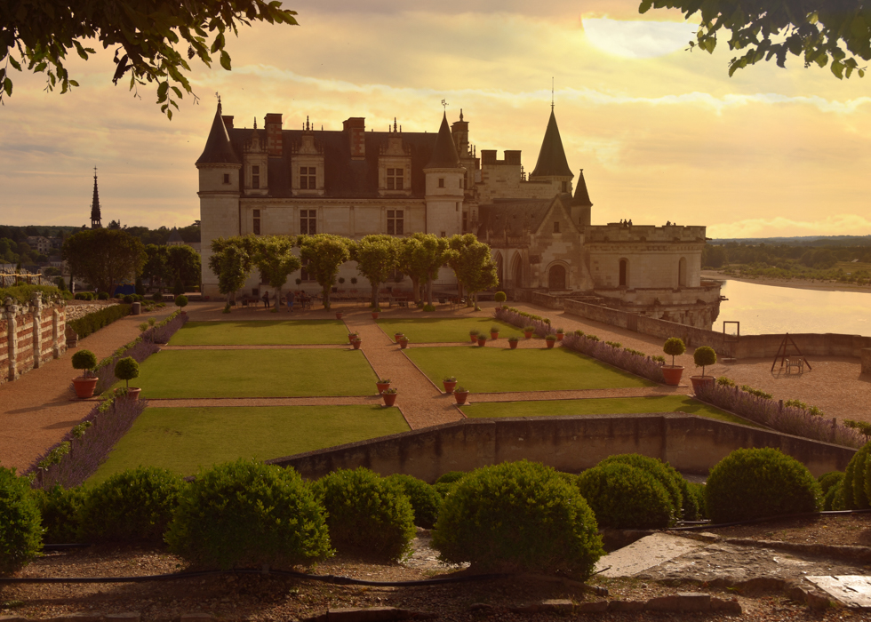 สวนของปราสาท Amboise ตั้งอยู่ริมแม่น้ำ สวนแห่งนี้มีลายละเอียดที่ประณีตและสวยงาม เต็มไปด้วยพันธุ์ไม้เช่น โรสแมรี่ มะลิ และดอกไม้ต่างๆมากมาย นอกจากนี้ยังสามารถมองเห็นวิวของแม่น้ำได้จากภายในสวนด้วย สวนแห่งนี้จะสวยงามมากยิ่งขึ้นในช่วงเวลาพลบค่ำซึ่งเป็นช่วงของพระอาทิตย์ตกดินนั่นเอง