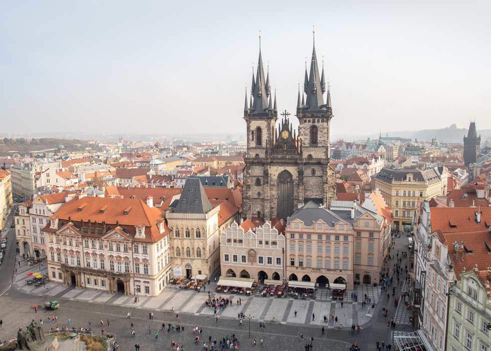 และนี่คือว่าของจัตุรัสเมืองเก่าและโบสถ์ Tyn จากจุดชมวิว จะเห็นได้ว่าผู้คนด้านล่างนั้นตัวเล็กลงไปถนัดตา การที่ได้ขึ้นมายืนชมวิวตรงนี้ถือว่าเป็นชั่วขณะหนึ่งที่ทั้งสนุกและสงบไปพร้อมๆกัน ชมวิวเมืองพลางสังเกตผู้คนที่ใช้ชีวิตกันอยู่ที่ด้านล่าง