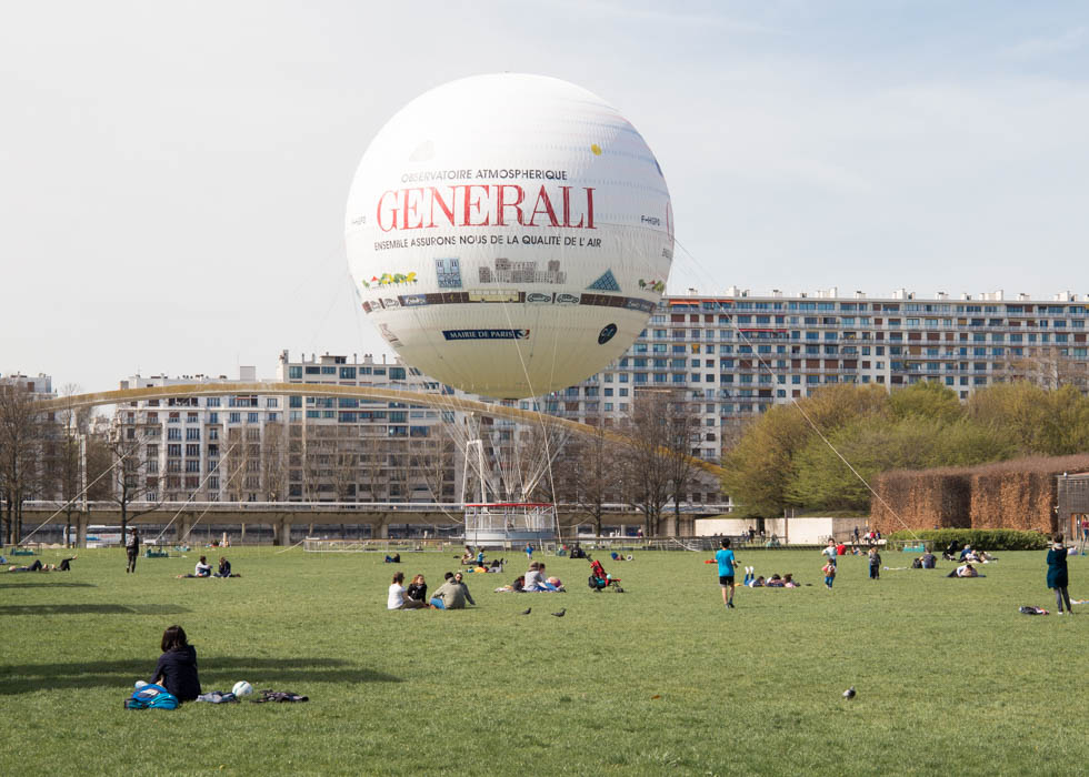 สวนนี้ให้บรรยากาศเหมือนอยู่นอกเมือง แต่เปล่าเลย ยังตั้งอยู่ในมหานครปารีสนี่แหละ พื้นที่สวนเป็นลานกว้าง มีบอลลูนลูกมหึมาลอยอยู่ที่กลางสวน การออกแบบสวนที่นี่ให้ความสำคัญทั้งความเป็นเมืองหลวงและธรรมชาติ จะเห็นได้ว่ามันออกมาได้อย่างสวยงามและลงตัว