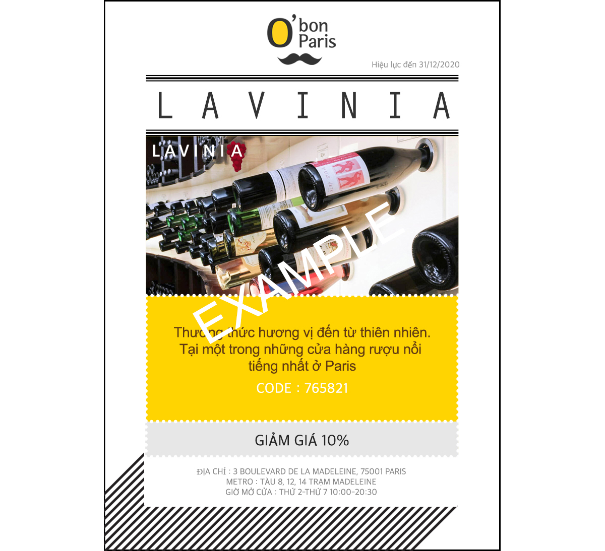 (4) Mang theo coupon (nên tải về và lưu trong điện thoại) đến Lavinia để mua rượu và hưởng ưu đãi.