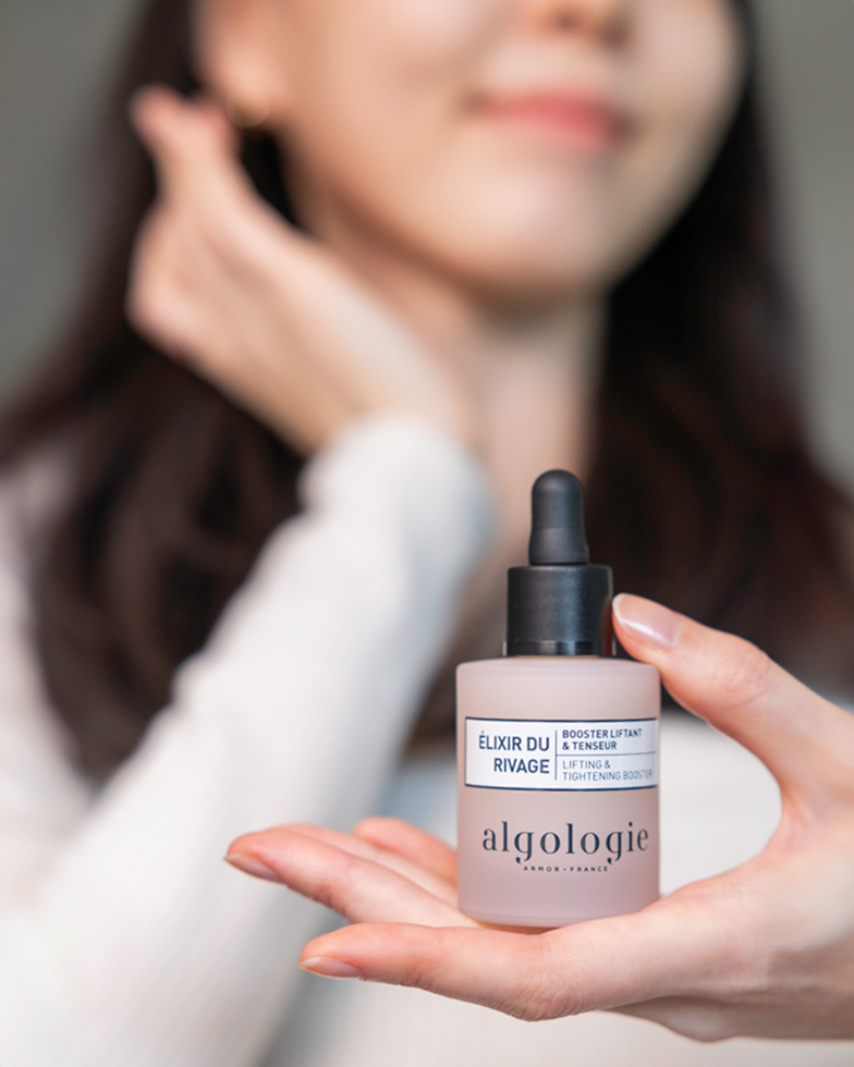 Elixir du Rivage 是一款高效提拉緊緻精華,含有能提亮膚色的光反射劑。它能有效地緊緻肌膚,其“提拉”質地使肌膚看起來更加光滑。艾可洛奇產品源自法國西北部的布列塔尼地區,採用當地的天然海洋活性成分。97%的成分來自天然。