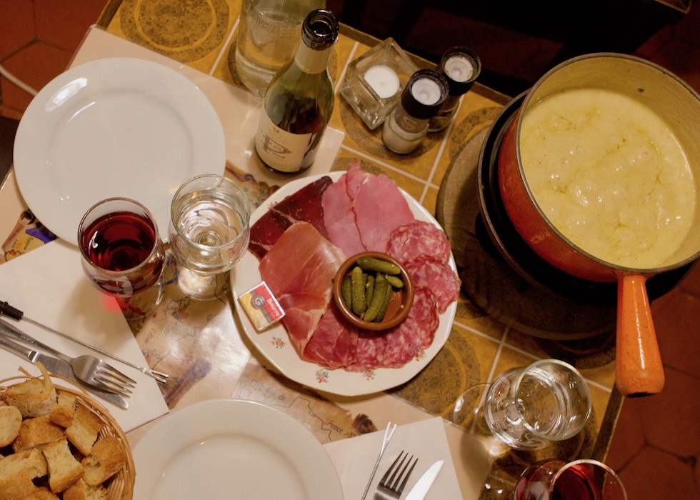 這個起司鍋包含了埃文達起司,牛肉,白葡萄酒,大蒜,鹽和胡椒。瑞士起司鍋通常包含了兩種口味- 埃文達起司(Emmental)和格呂耶爾起司(Gruyere),不過法國的起司鍋通常都有三至四種的起司混在一起。