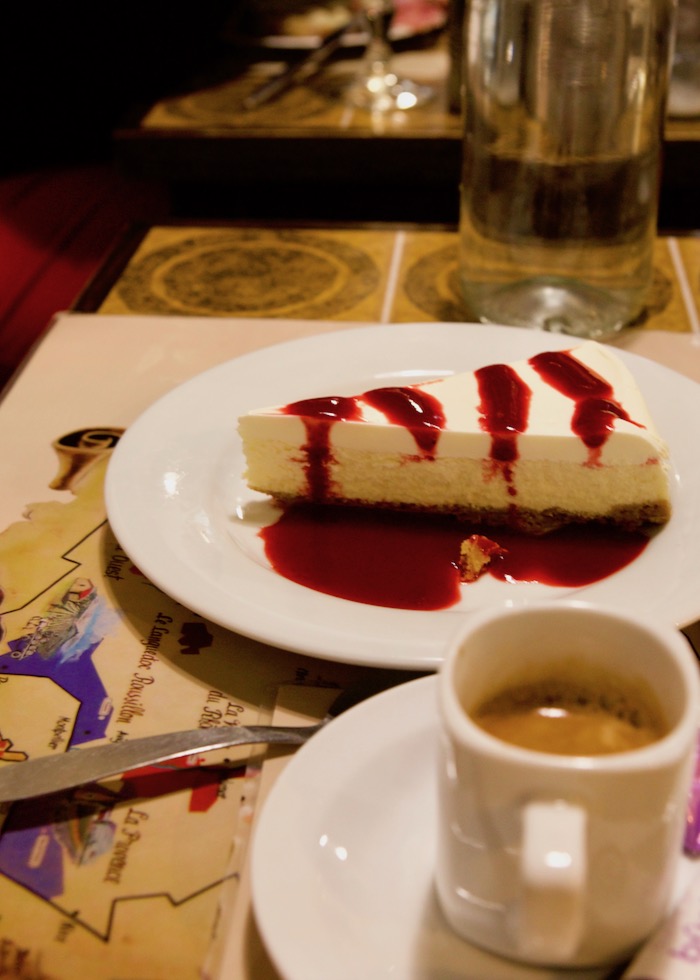 推薦一定要點起司蛋糕作為甜點。吃起來綿密,而在下方的覆盆子糖漿和餅乾味道不會太重而蓋掉起司本身的味道。