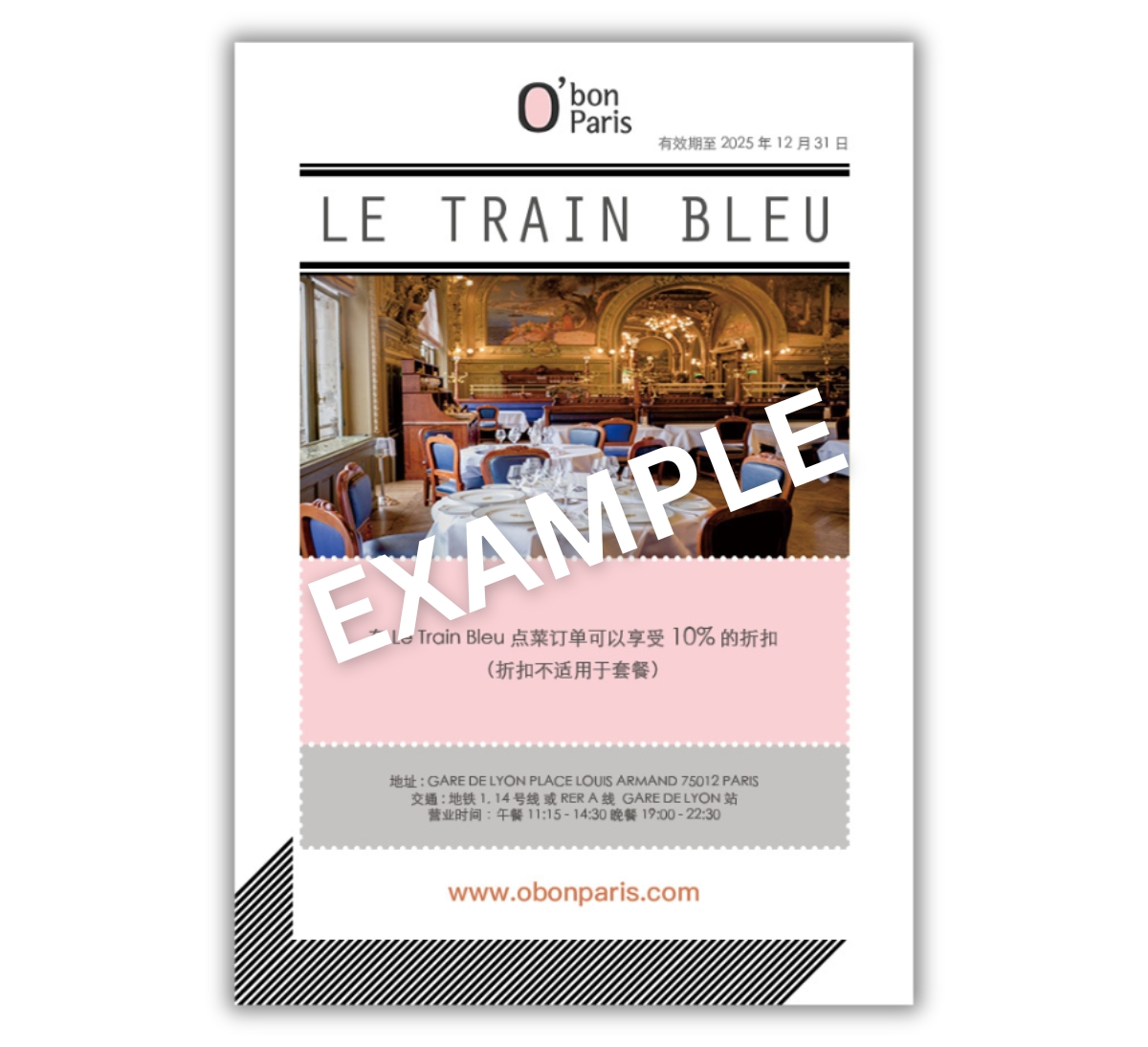 (4)到蓝火车餐厅le Train Bleu中午及晚上时间用餐,享用八折优惠