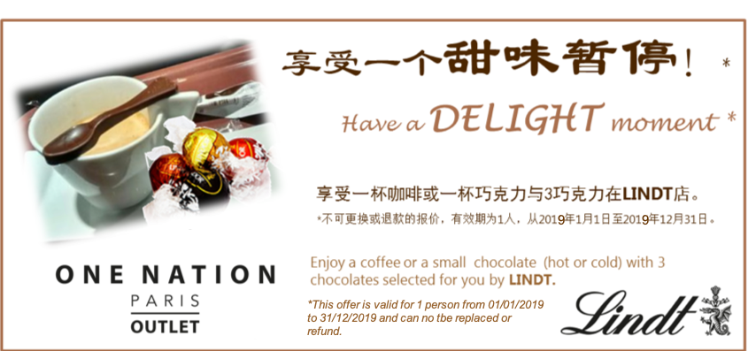 -到达One Nation巴黎万娜打折村后,直接前往在老佛爷折扣店旁边的接待办公室(welcome office),向工作人员出示O'bon Paris的优惠券,你就可以获得One Nation Paris的通行证,使用通行证,可以在大部分商店获得折上9折的优惠。