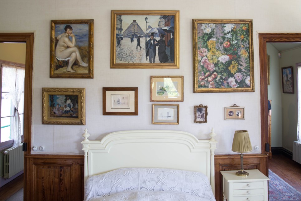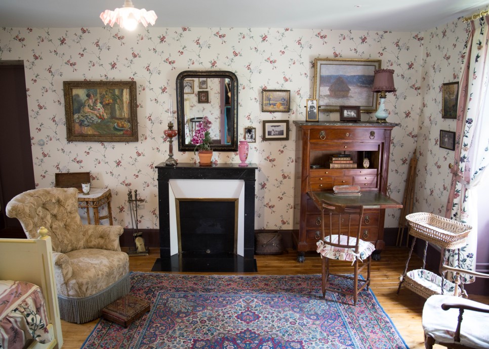 モネは、アンティーク家具で飾られた温かみのある印象のこの2階の部屋でほとんどの時間を過ごしました。ベッドのそばの窓の外を見れば、青々とした木々と色とりどりの花が美しい絵を描き、軽やかな花の香りがムードを盛り上げている。