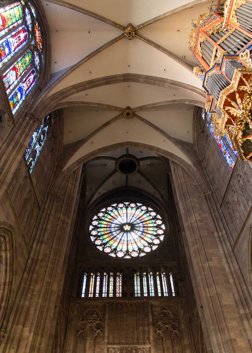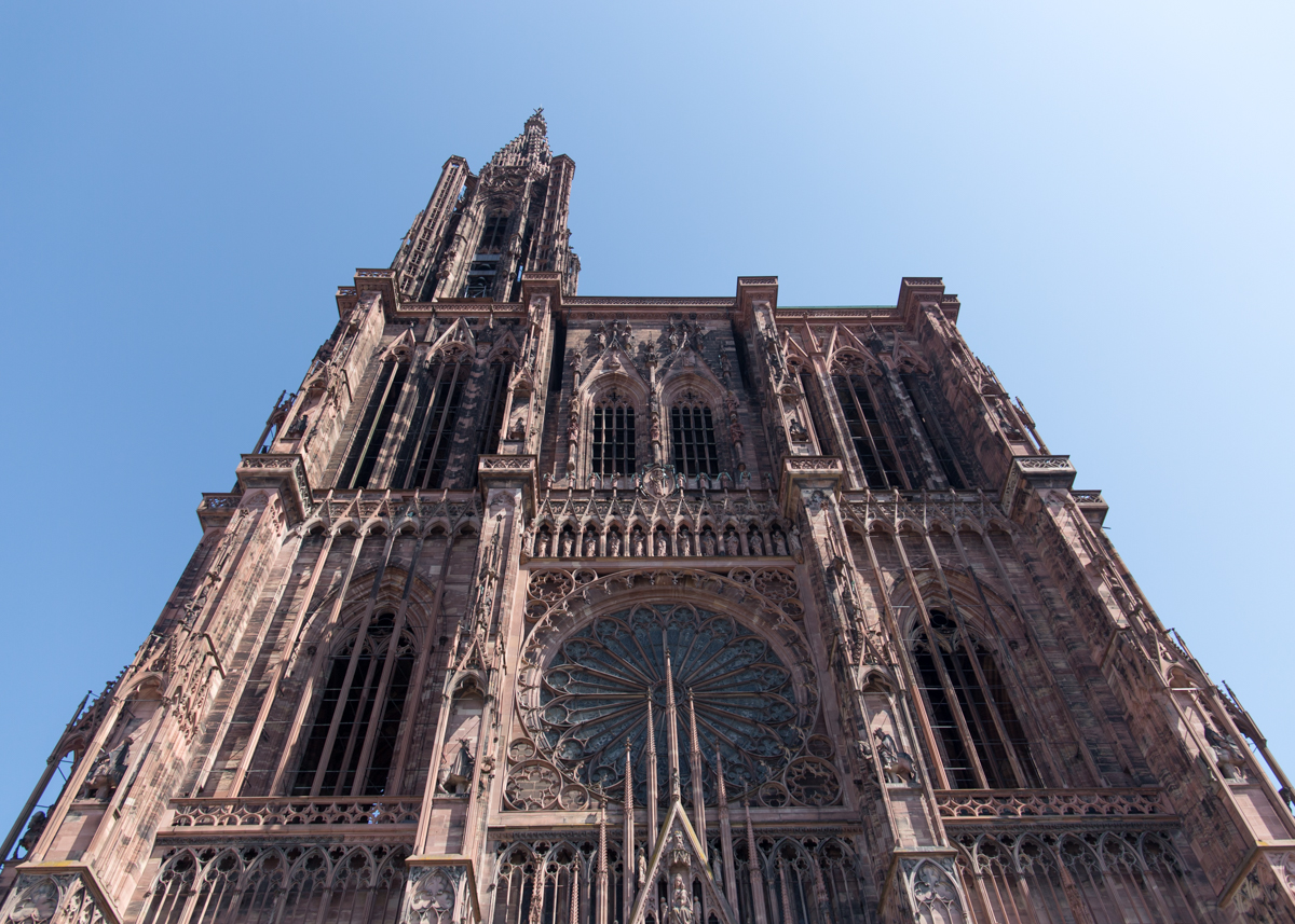 스트라스부르 성당은 1439년에 준공되었으며 웅장한 크기와 높이로 관광객들을 사로잡는다. 단순한 건축물 넘어 하나의 작품으로 인정받는 이 성당은 스트라스부르의 깊은 역사와 예술성을 담아내고 있다. 고딕 건축양식의 대표로 인정받는 이 성당은 독일과 프랑스 문화의 영향이 자연스럽게 스며들어 있음을 확인할 수 있다. 동쪽 구조물은 로마네스크 양식을 따르는 반면 서쪽 파사드는 수백개의 형상들로 고딕양식의 진수를 보여주고 있다.