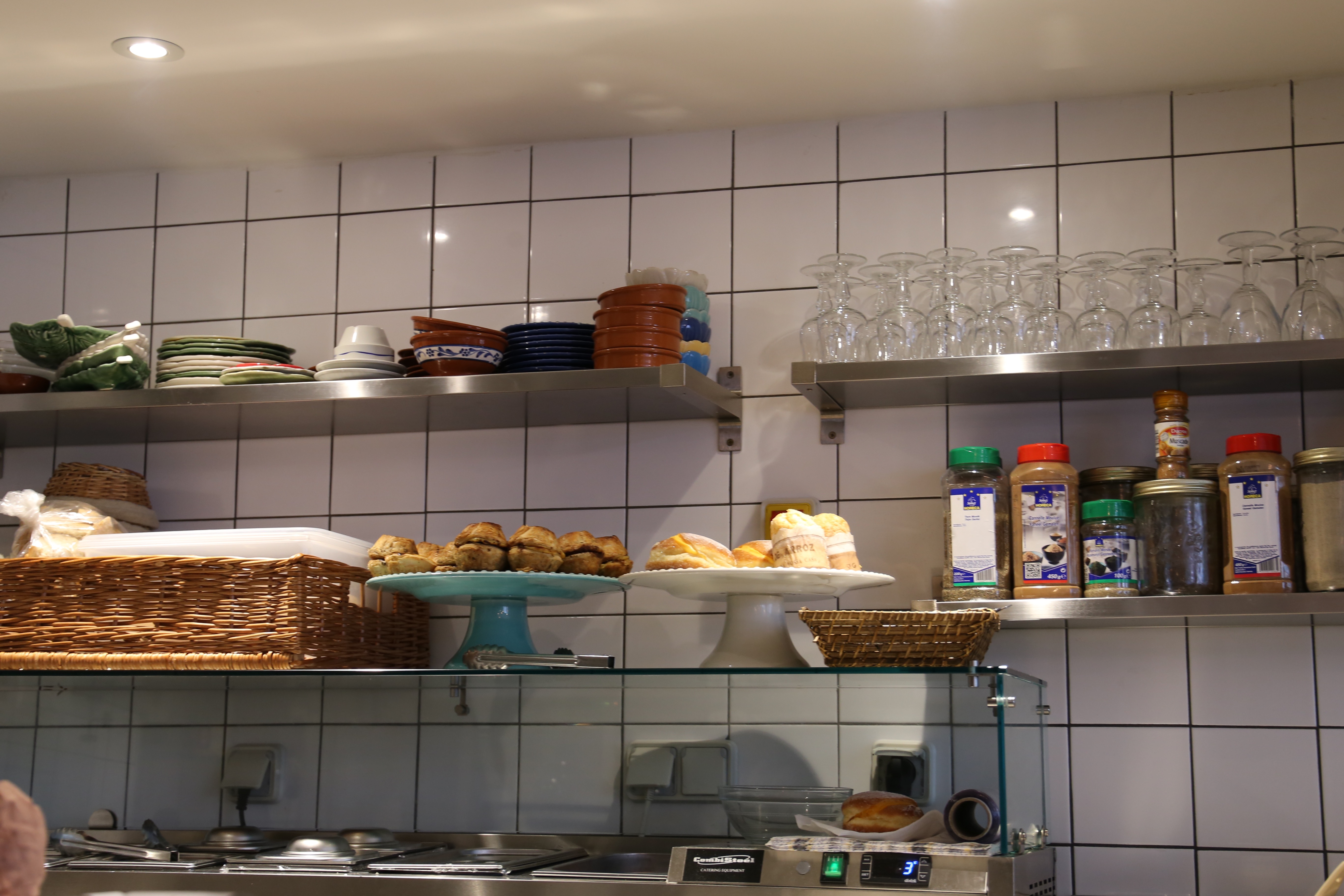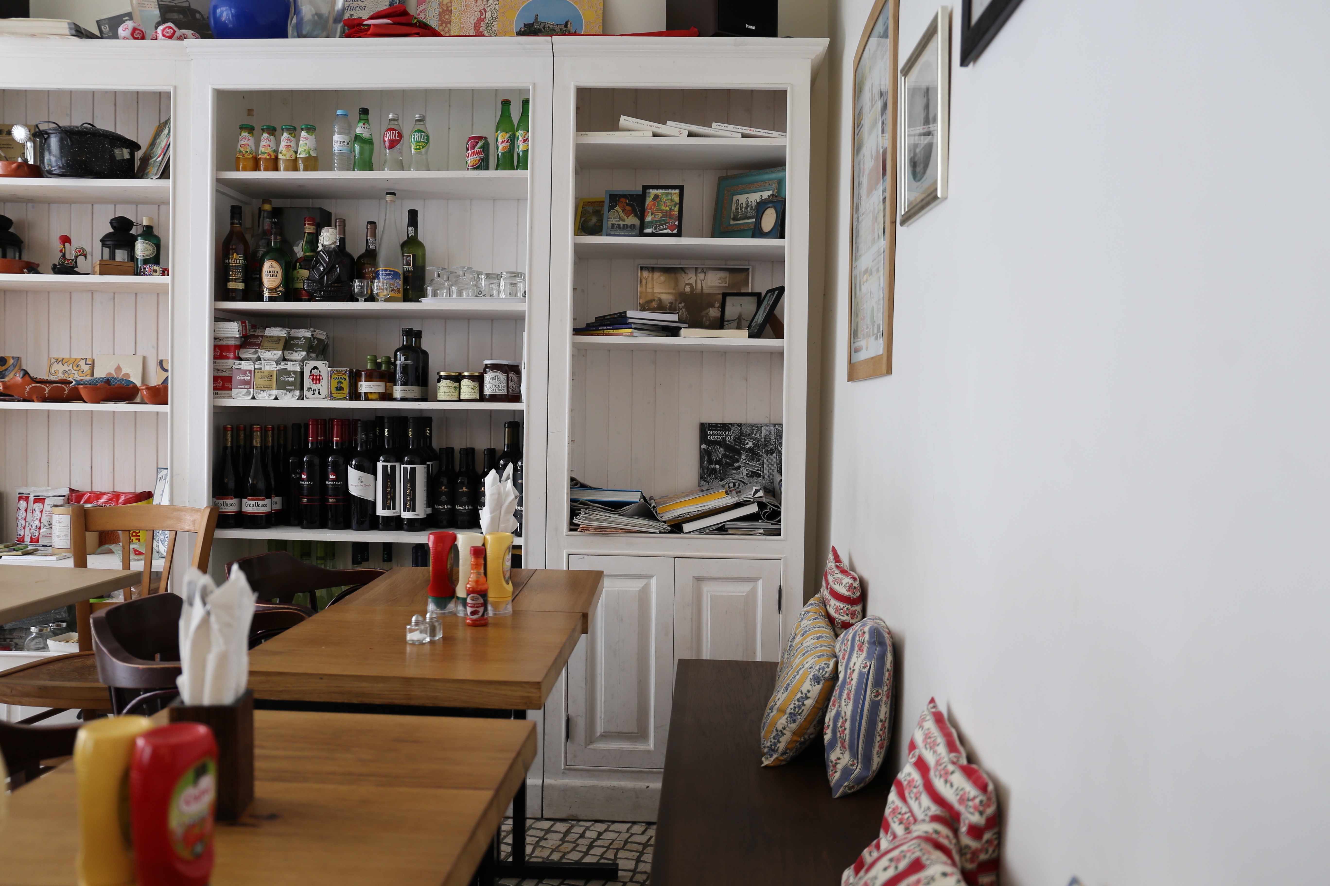餐廳空間並不大,門口進去的左手邊牆櫃擺滿了來自葡萄牙的調味品,右邊的開放式廚房讓我們可以清楚看到我們的食物是如何被準備的,由於價格非常親民,要記得早點到,否則大概十二點半左右就高朋滿座!