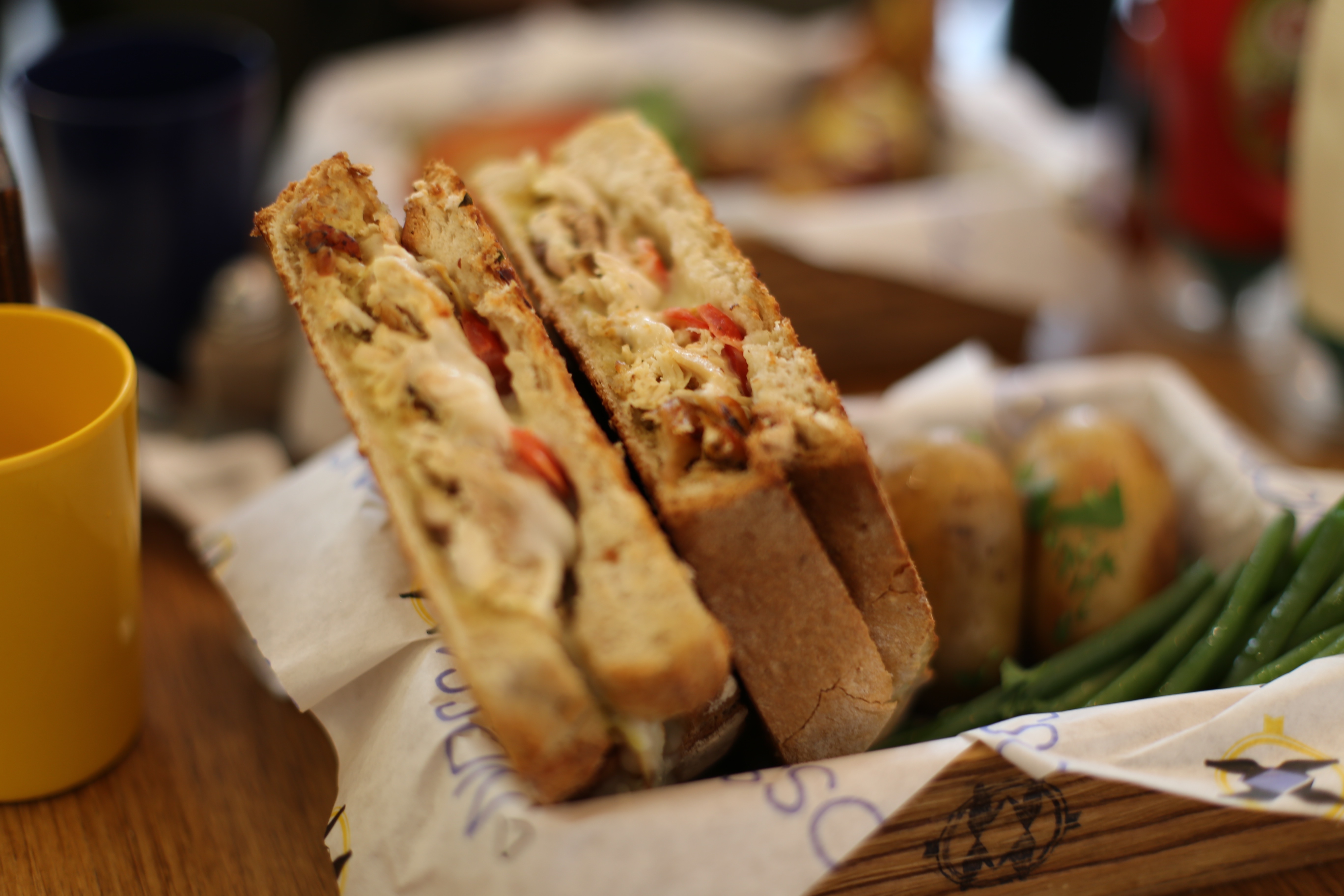 1 tosta, nossa : poulet grillé, tomate, fromage 烤吐司夾烤雞、番茄、起司加馬鈴薯和青豆 - 高度推薦點這個,好吃又不會油膩,份量又相當大。