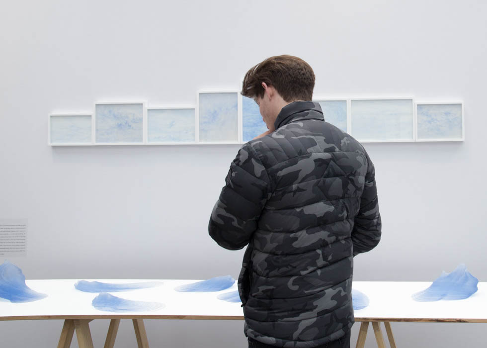 SOSO Gallery is located in Paju, South Korea. The creator of this piece is Kim Yun-soo, a Korean artist. The blue laminated structure shows the texture of the waves. Kim Yun-soo's works sometimes depict changing landscapes, depicting the dynamic forms of wind, rivers, and mountains.