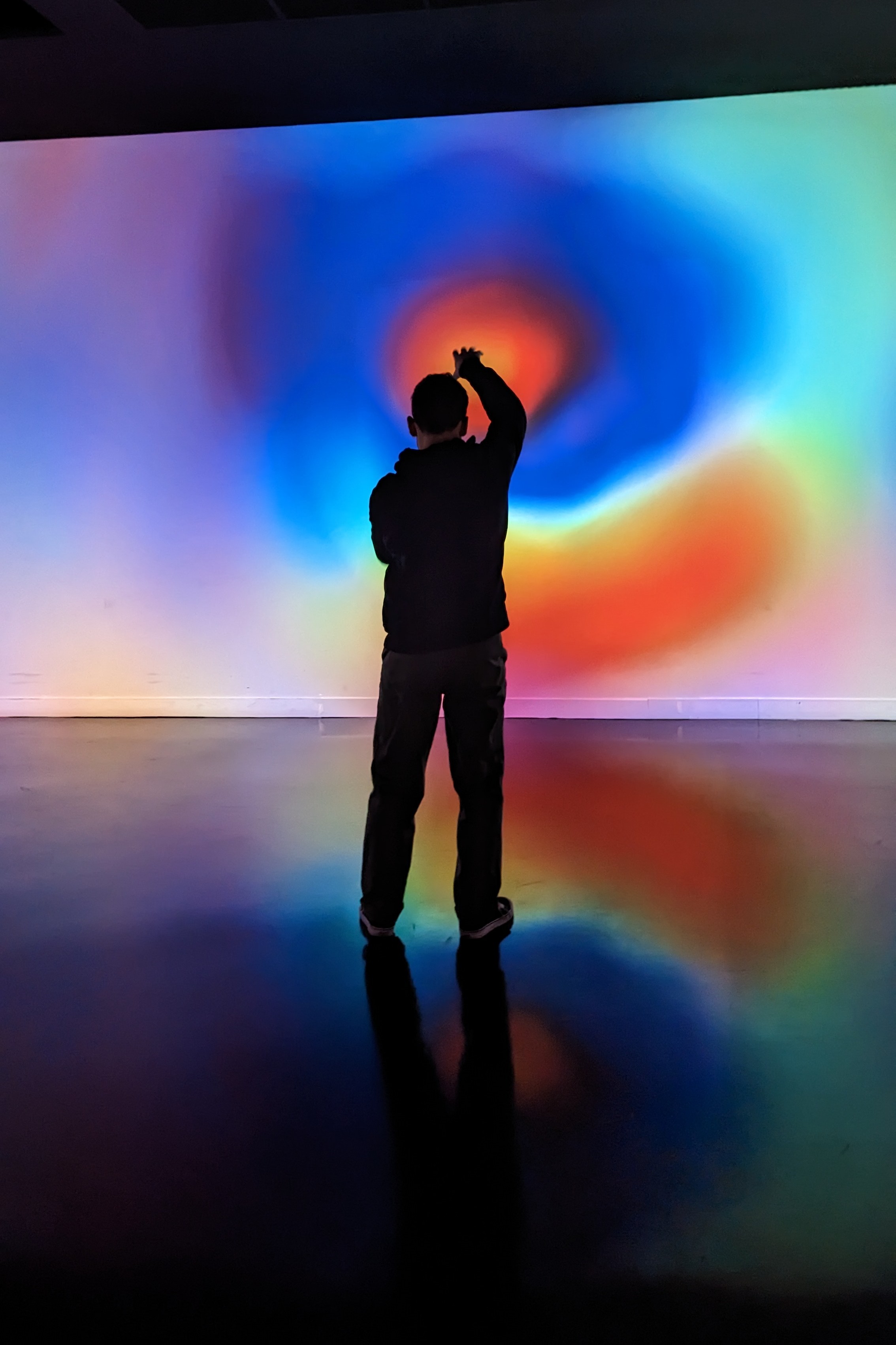 The digital projections cover the entire exhibition space, from the walls, columns to the floor we were standing on. This immersive effect seemingly mends the art and audience, uniting them as one.
