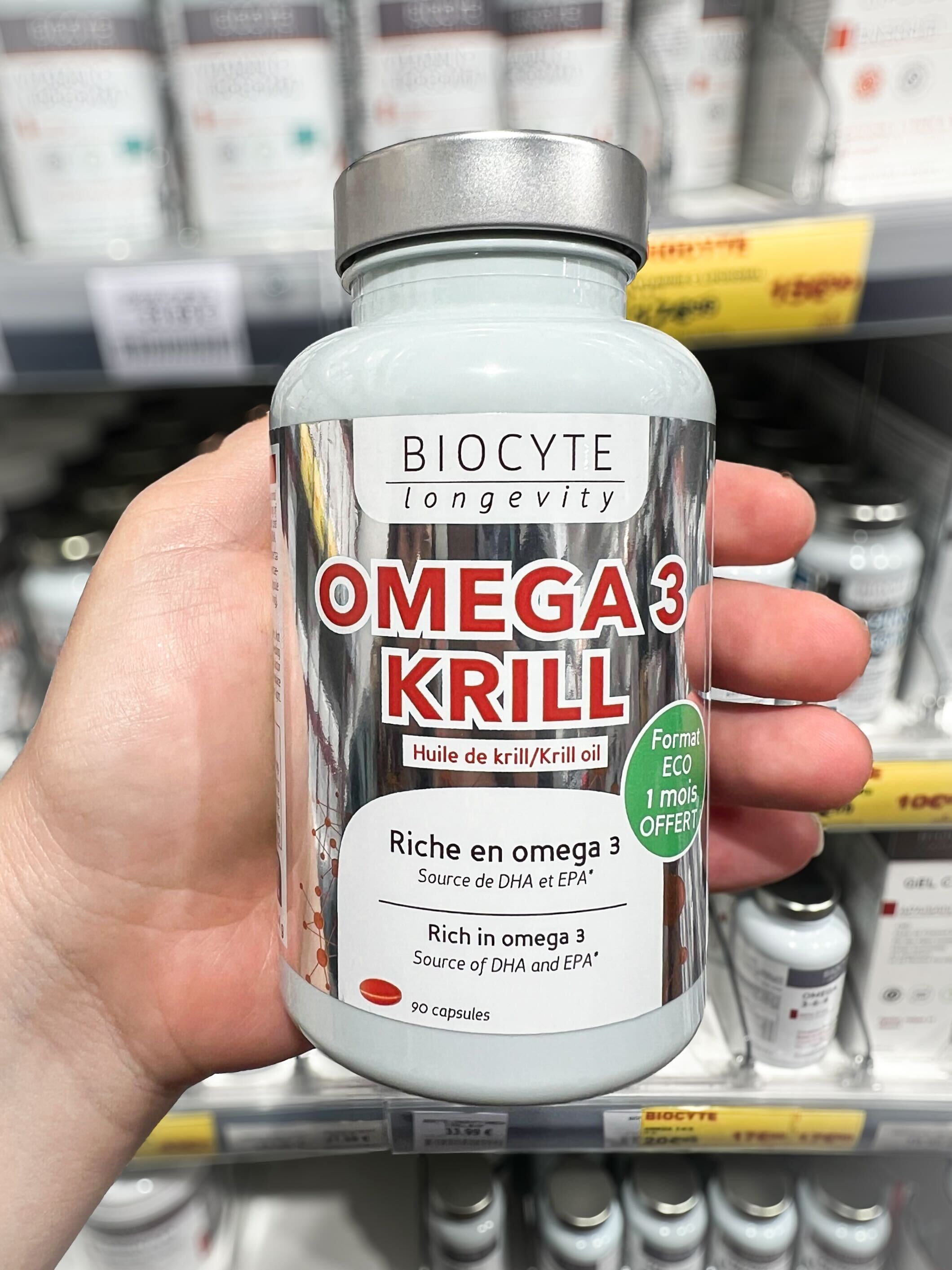 Biocyte Oméga 3 Krill is a food supplement based on krill oil. It contributes to the normal function of the heart, thanks to Eicosapentaenoic acid (EPA) and docosahexaenoic acid (DHA). DHA also contributes to the maintenance of normal brain function and normal vision.