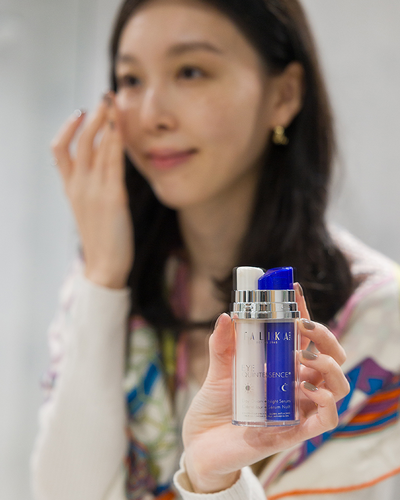 Eye Quintessence is a 2-in-1 eye contour moisturizer and serum, offering anti-aging benefits for day and night. The formula refreshes the eye contour from the first application and reduces the main signs of skin aging: eyes appear less tired, skin is perfectly hydrated, the eye contour feels smoother, eyelids are lifted, dark circles are diminished, and puffiness is less visible.