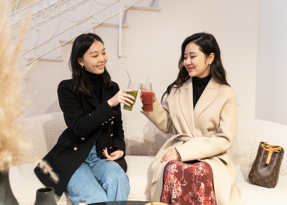 Your taste buds are awakened by a dazzling welcome juice, specially crafted by their professional nutritionists—an invigorating "Skin Beauty Cocktail" with four meticulously blended variants. Each drop is cold-pressed to awaken your senses for a comprehensive revival.