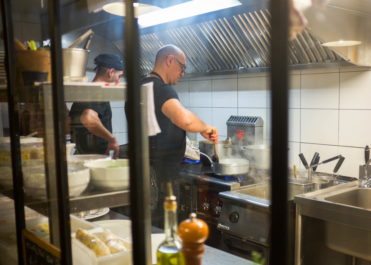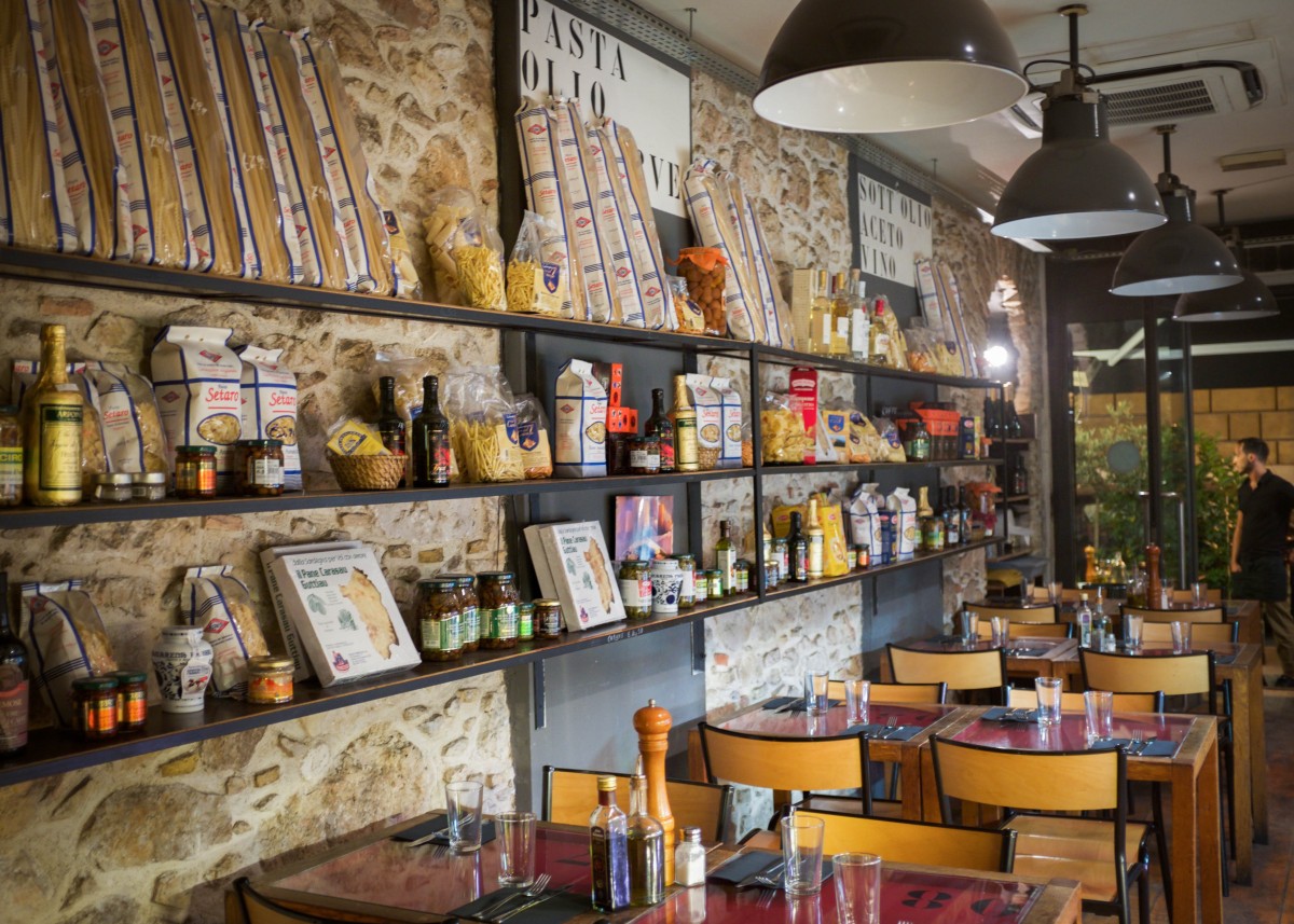 The place is both a restaurant and a delicatessen shop following the Italian tradition of the entire family living and working in the same place, ruling both a shop and a restaurant, and living at the background of the room. At the very end of the restaurant, there is an opened kitchen that allows us to enjoy the cooking and talk with the very friendly Italian chef.