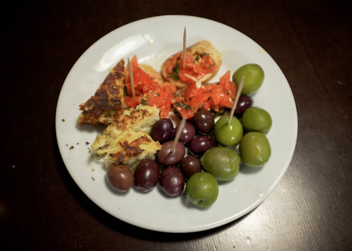 Offered Appéritif : toasts with Fresh tomates and olive oil , local omelettes