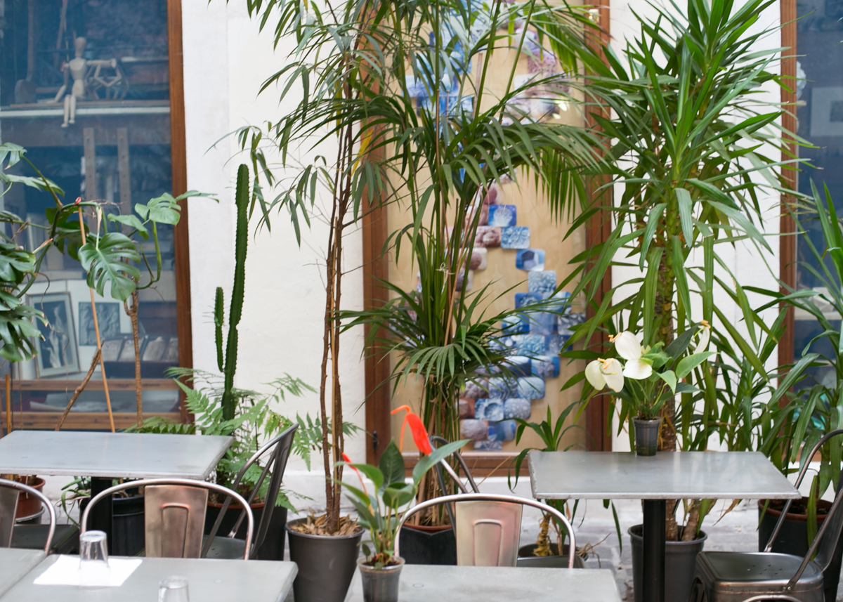 The Montecao is in the warren of streetlets and squares that make up the Village. Its main seating area is an inner conservatory packed with leafy plants and, on the chilly day we visited, steamy warmth from heat lamps. Montecao means Spanish sable biscuits. Although the terrace isn't too shabby, there is something very special about this cafe.