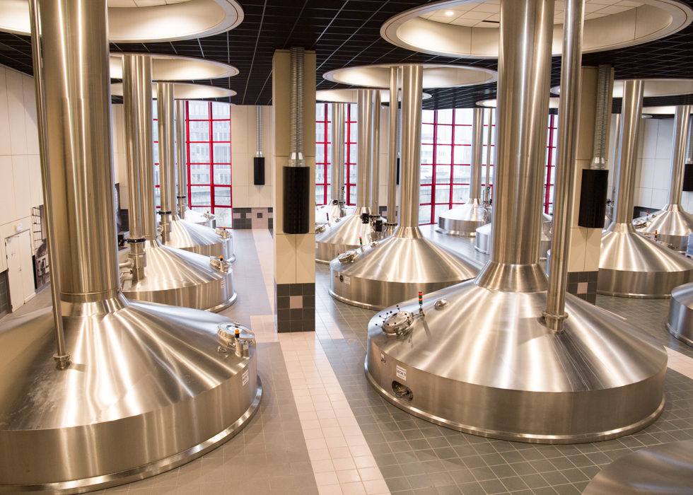 Stella Artois brewery roots back to 14th century. The beer used to be brewed in Den Hoorn Brewery and later Stella Artois purchased it. Still now, the symbol of the Den Hoorn Brewery is proudly displayed in Stella Artois' cartouche to this day. After listening to the history of the brewery Stella Artois, the guide will take you to the huge brewing room. Brewing beer is about regulating the interactions between water, starch, yeast, hops, and some often spices in Belgium. In this brewing room, the water is precisely conditioned to produce stable beers.