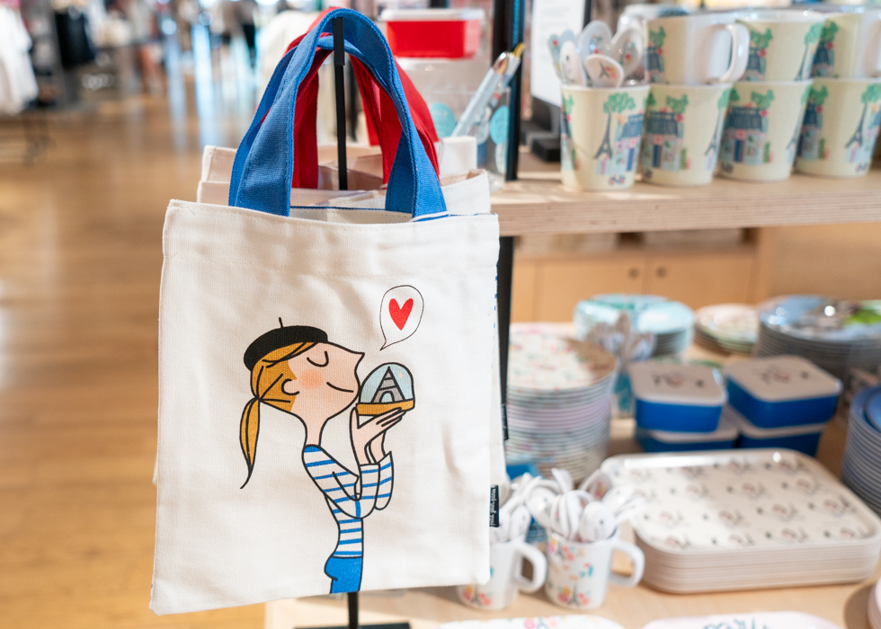 La tienda trabaja directamente con prestigiosas marcas francesas. Aquí encontrarás boinas hechas en Francia de Laulhère, camisetas rayadas de Saint James, y vajillas de Gien... Explora las diversas colecciones de recuerdos en esta pequeña tienda tesoro.