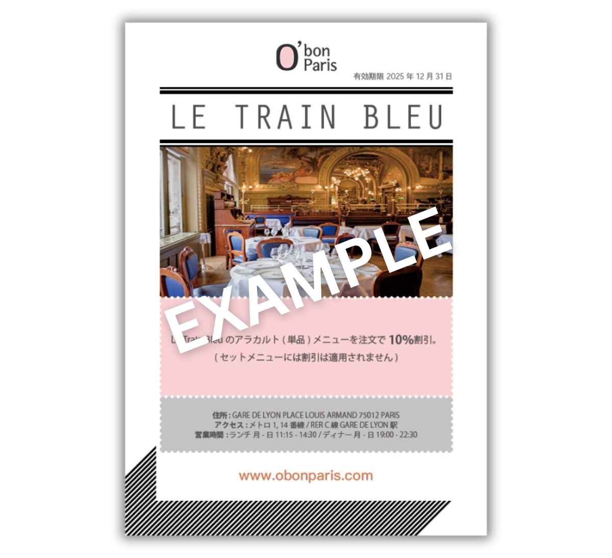 -下記の特別なイベントの日程においては、O'bon Parisのクーポンはご利用頂けません。
