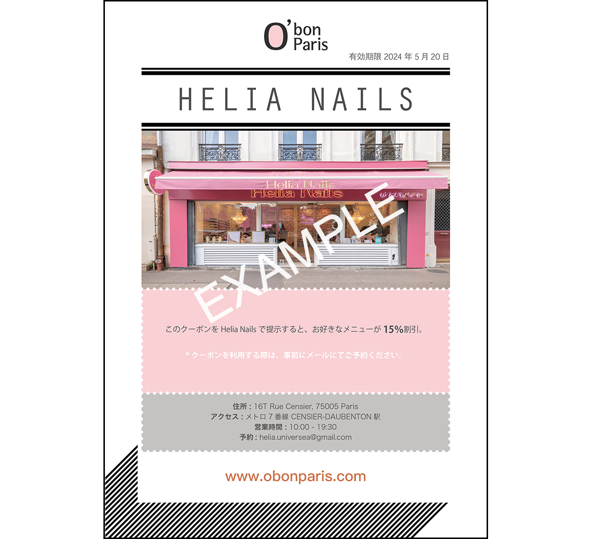 爪のお手入れが必要な場合、またはパリでネイルアート、ワックス脱毛、まつげエクステなどの美容サービスを安く手頃な料金で受けたい場合は、Helia Nailsサロンに行ってみては?5 区の便利な場所にあり、歴史あるラタン地区のパリ植物園の近くにあるこのネイル サロンで、特に学生向けですです。