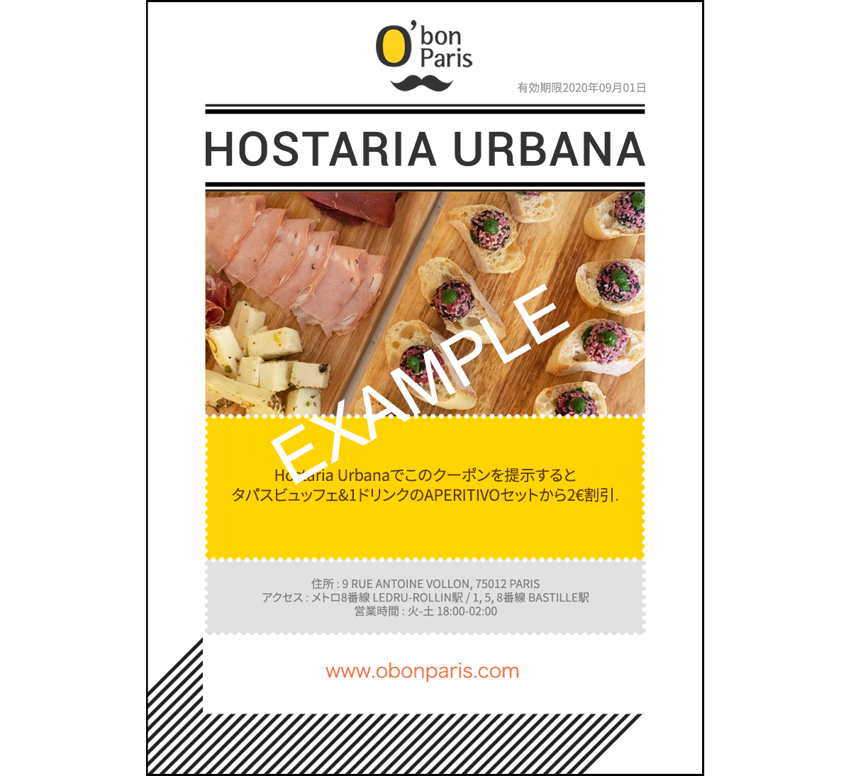 光の都、パリに来たのであれば、雰囲気のいいバーで過ごす夜の時間も欠かせないもの。本場パリで思い出に残る夜を過ごすなら、ヨーロッパのアペリティフ文化に触れるのがおすすめ。パリの本格的なバイブスに触れるなら、HOSTARIA URBANAの毎週火曜と水曜のタパスビュッフェとドリンクのセットがぴったり。このセットには、O'bon Parisクーポンで2€割引になるので、ご用意をお忘れなく!!
