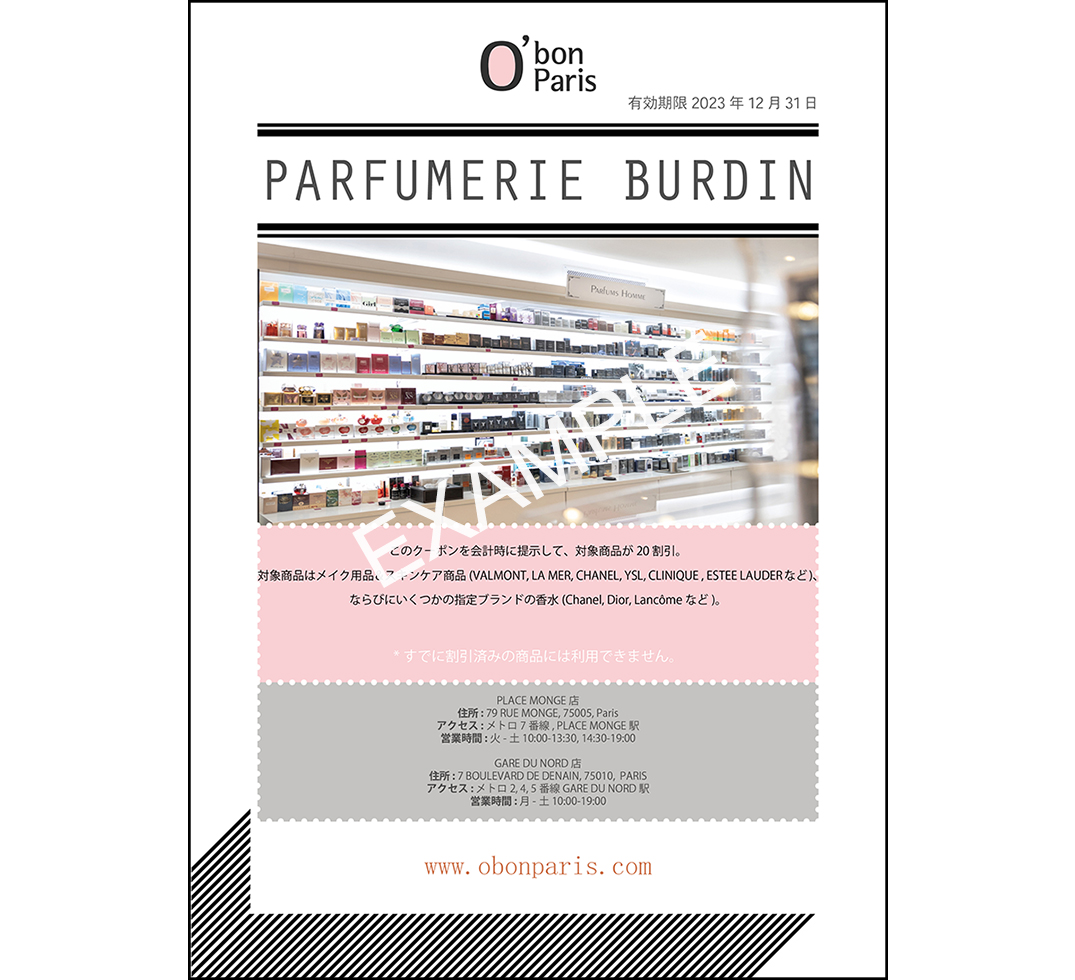 4) Parfumerie Burdinで、レジで会計前にクーポンを提示して、割引をお楽しみください。