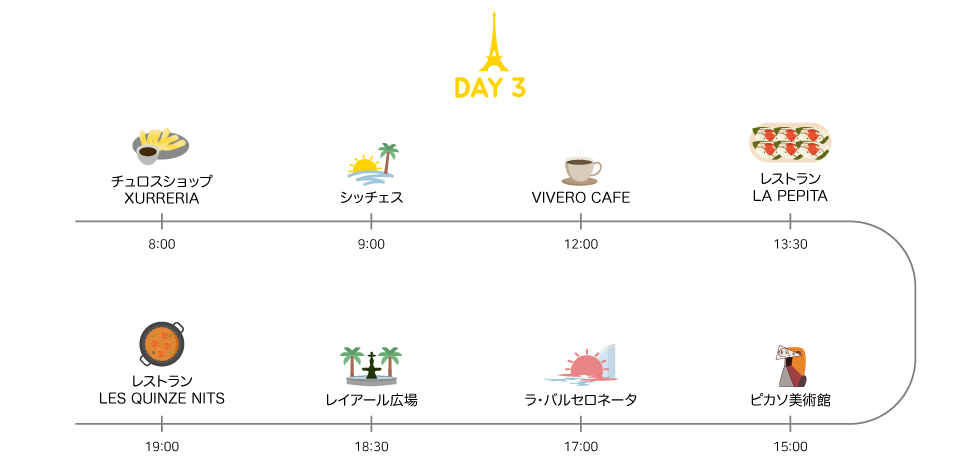 アクセス : バルセロナ・サンツ駅から電車に乗りシッチェスで下車。電車や発車プラットフォームは時間によって異なるので時刻表を確認する必要があります。チケット購買機はオレンジ色のものです。