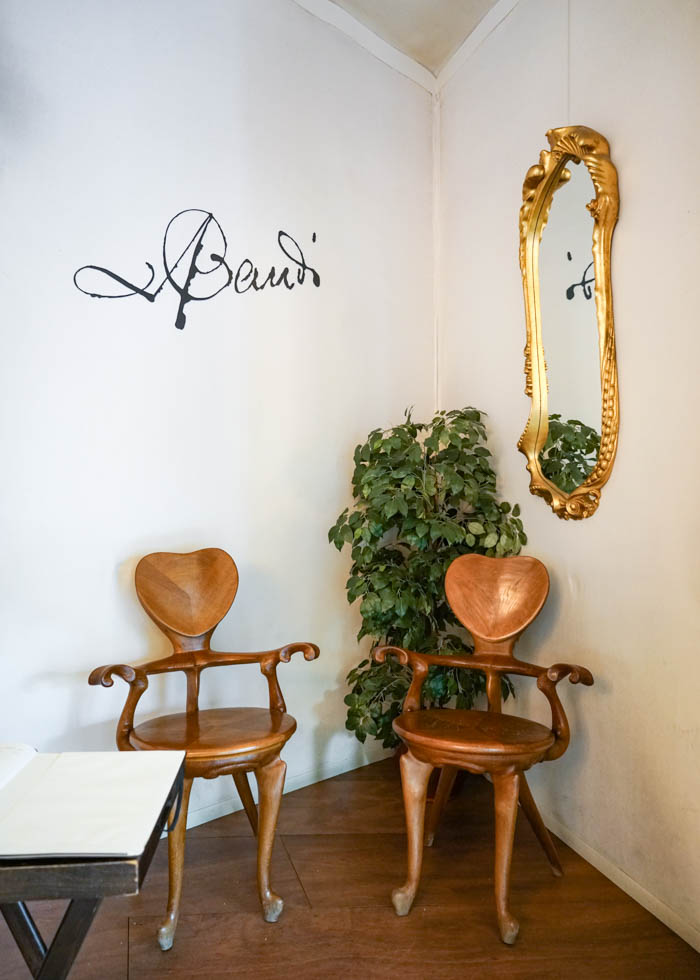 上の写真はカフェ内にあるガウディが設計した椅子のレプリカ。ガウディは建物だけでなく、その中を彩る家具にもこだわりを持っていました。美しいデザインだけでなく、人間の体にフィットするようにデザインされているため座り心地がいいのも特徴的です。