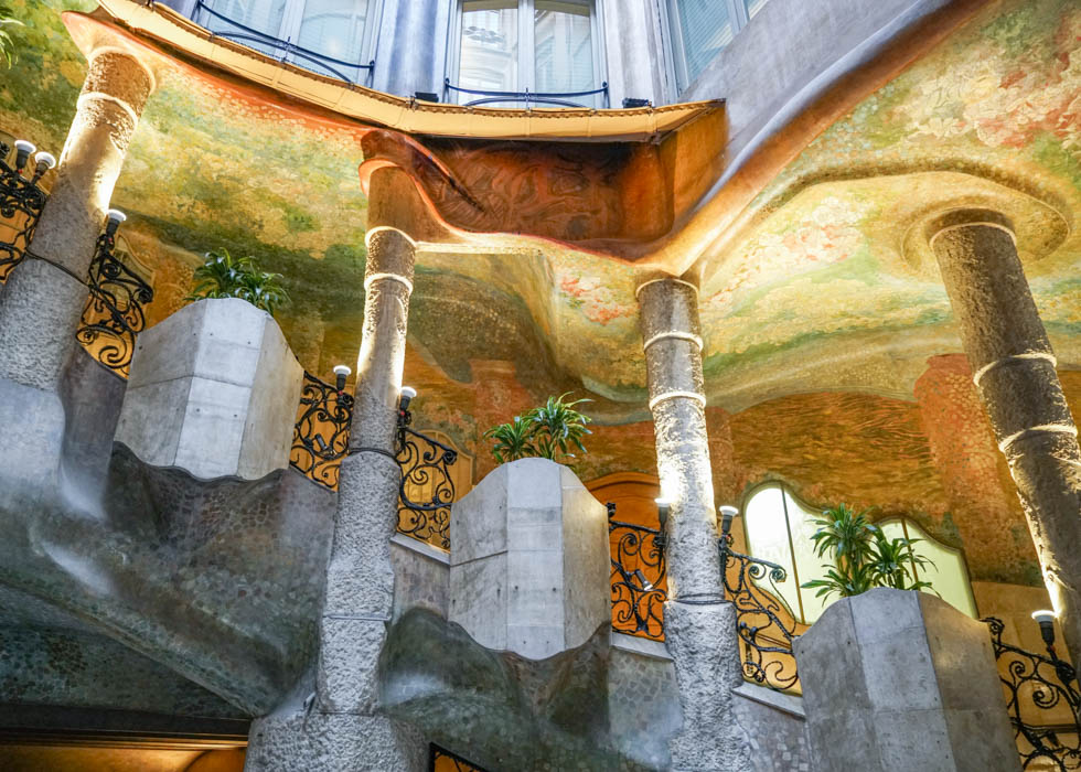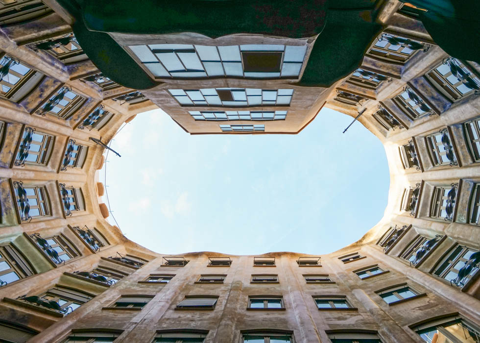 カサ・ミラの中心部は屋根のない大きな吹き抜けとなっています。この吹き抜けがあることによって、太陽光が室内に多く入り、住む人が心地よく過ごせる建築となっています。太陽も自然の一部。その自然を建築の中に取り込んだガウディらしいこだわりと言えるでしょう。
