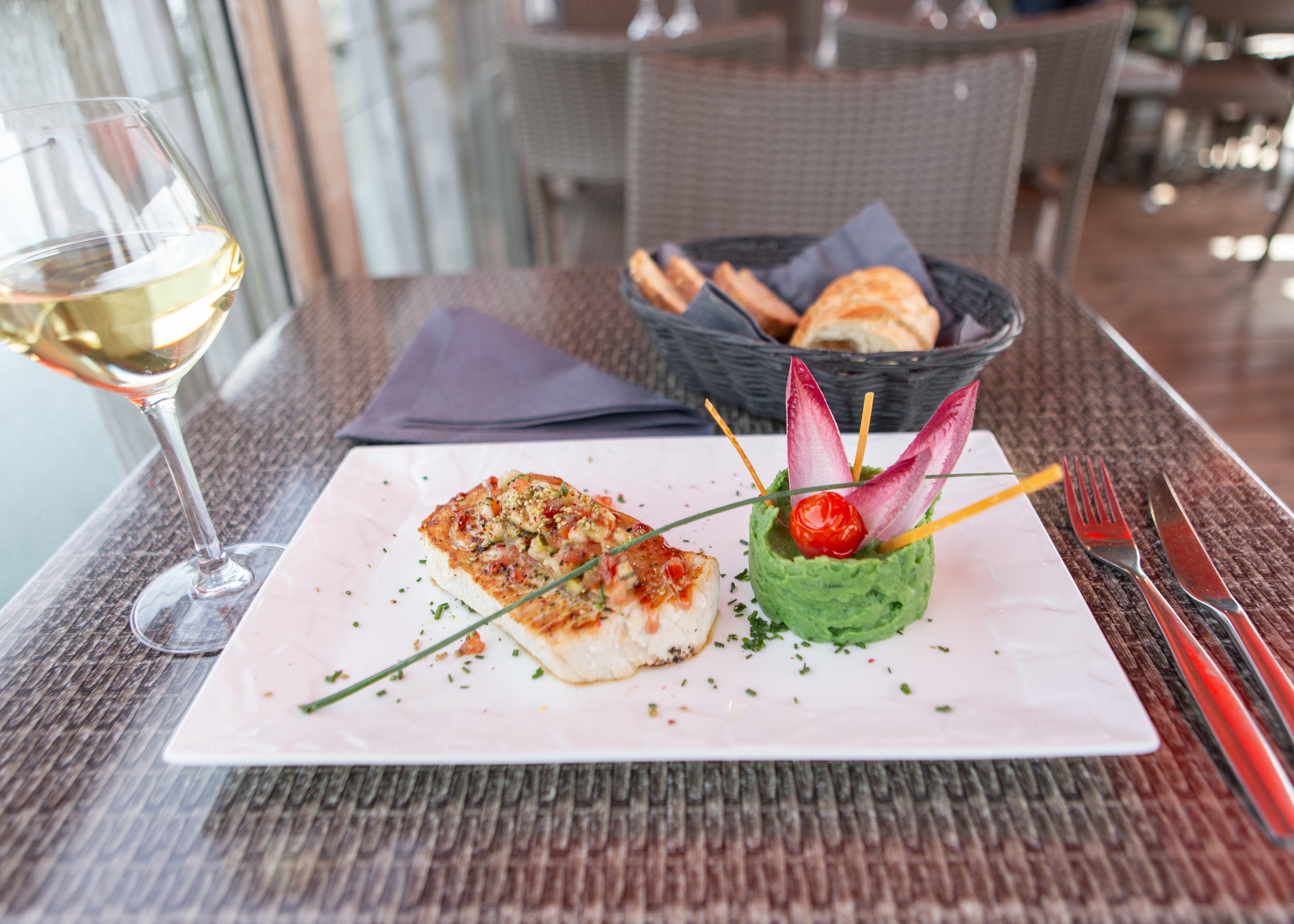 PAVE D'ESPADON SAUCE VIERGE, PUREE D'EPINARD