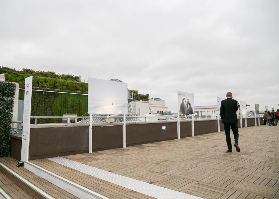 また、屋上には、今回のクリスマスの飾りつけに合わせ、氷河の保存をテーマにした写真展が行われています。美しいだけでなく、環境への意識を高める意味を持つラファイエットのツリー。パリのクリスマス気分を盛り上げるのに、外すことのできないスポットです。