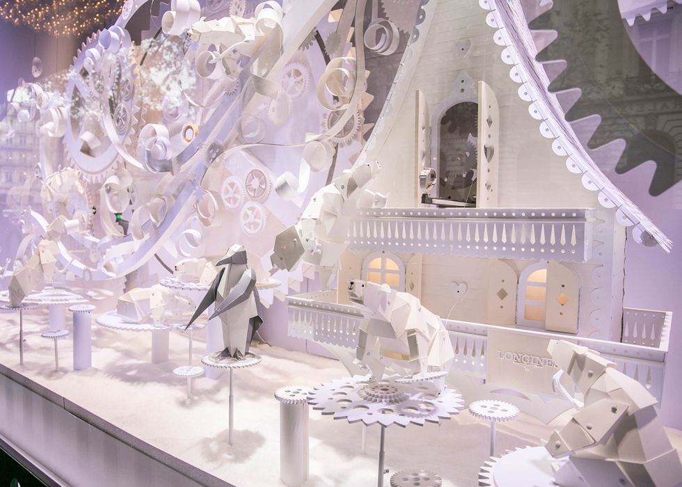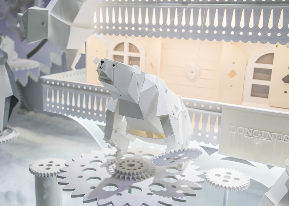 今年のギャラリー・ラファイエットのクリスマスデコレーションは、氷河を探して旅するホッキョクグマの物語を表現しており、氷河の保存の重要性を啓発する意図も込められているそうです。