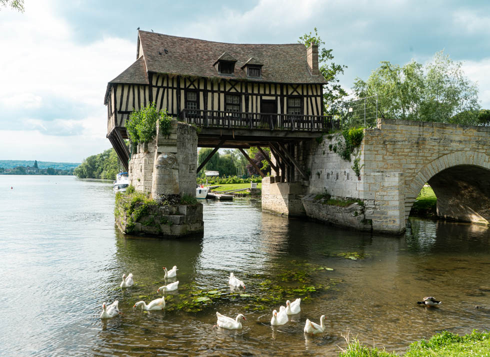 ヴェルノンの近くにあるル・ヴュー・ムーラン(古い製粉所)は、静かで写真映えのするスポットです。16世紀に建てられ、かつては水車小屋でした。モネをはじめ、多くの印象派画家が描いた。シャトルバスでジヴェルニーを訪れたら、そこで下車して、徒歩でヴェルノンまで戻ってくることもできます(セーヌ川の橋を渡って10分ほど)。