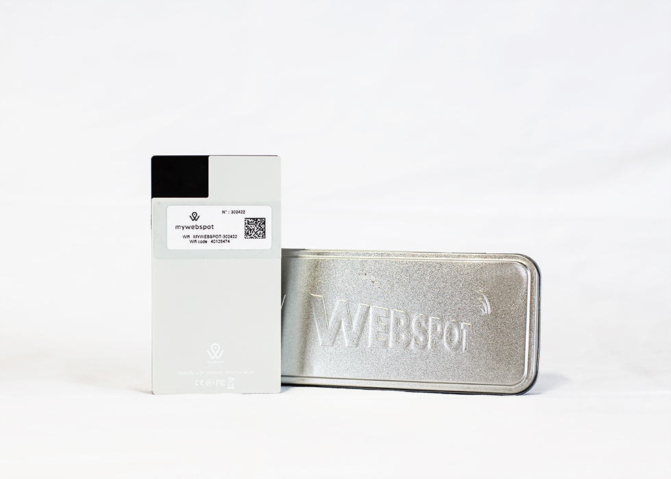 使用方法は非常に簡単!パッケージの中の本体右側、電源ボタンを3秒間長押しして電源を入れて、ライトが点灯したら、携帯電話のWifiリストからMy Webspotを選択、本体に記載されているパスワード8桁を入力するだけ。