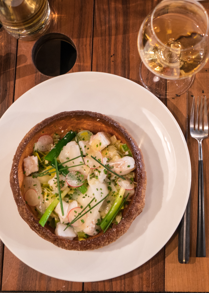 Scallop de Saint-Jacques - poireau crémé & jeune poireau, daikon au sel, radis, citron & gingembre, frisée fine & oignons