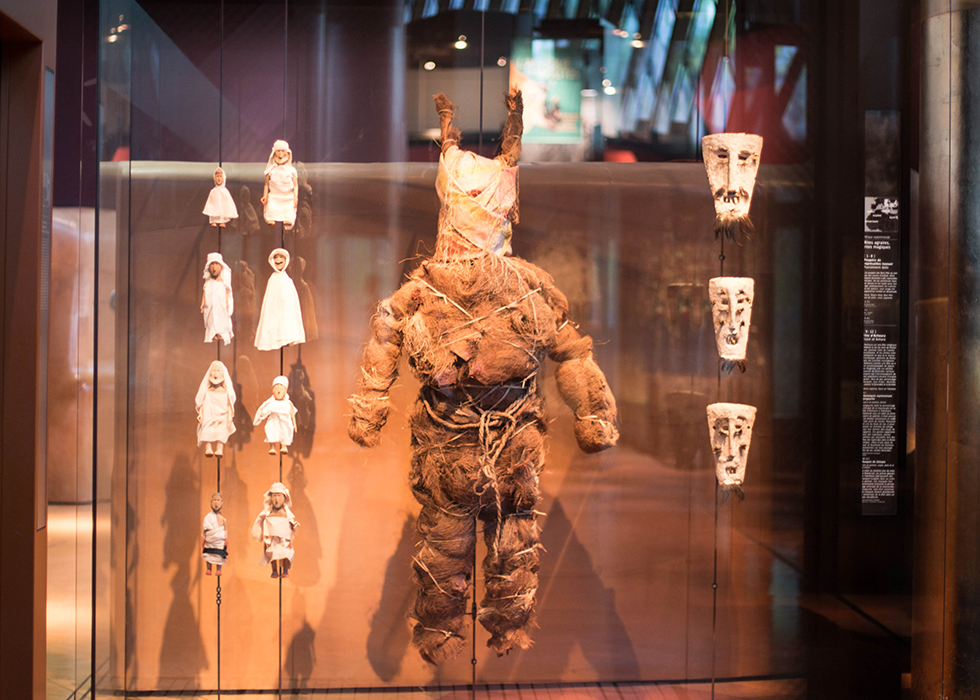 非ヨーロッパ圏の文化と芸術を紹介するメインの展示室は、低いパーテーションと斜面によってそれぞれの小さな展示スペースに分かれています。ジャングルの中に入ってきたような展示室を探検してみましょう。