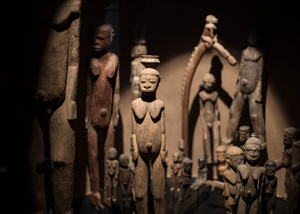アフリカ西部ベナン共和國の土着信仰に基づき作られた、彼らの皇帝を象徴する半人半獣の像です。植民地支配に遭ったときに、フランスに奪われ文化遺産として所蔵されています。