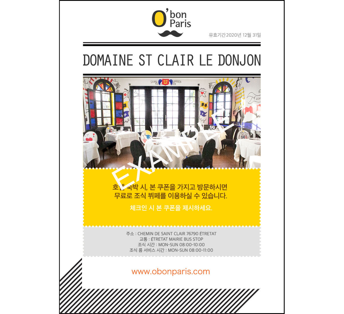 호텔 생 클레르 르 동종은 세계적으로 유명한 에트르타 절벽이 그대로 보이는 고성호텔로, 그림같은 뷰와 고성호텔 특유의 화려함과 고즈넉한 분위기를 즐기실 수 있습니다.