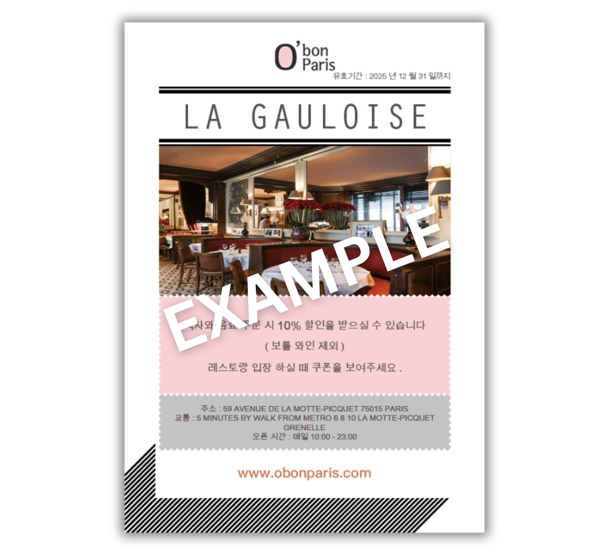 La Gauloise는 전통 프랑스 음식을 맛볼 수 있는 분위기 있는 레스토랑으로, 에펠탑과 가까이 위치해있습니다. 프랑스의 유명인사는 물론 정치인들도 많이 찾는 곳으로 현지인에게도 인정 받은 맛집입니다.