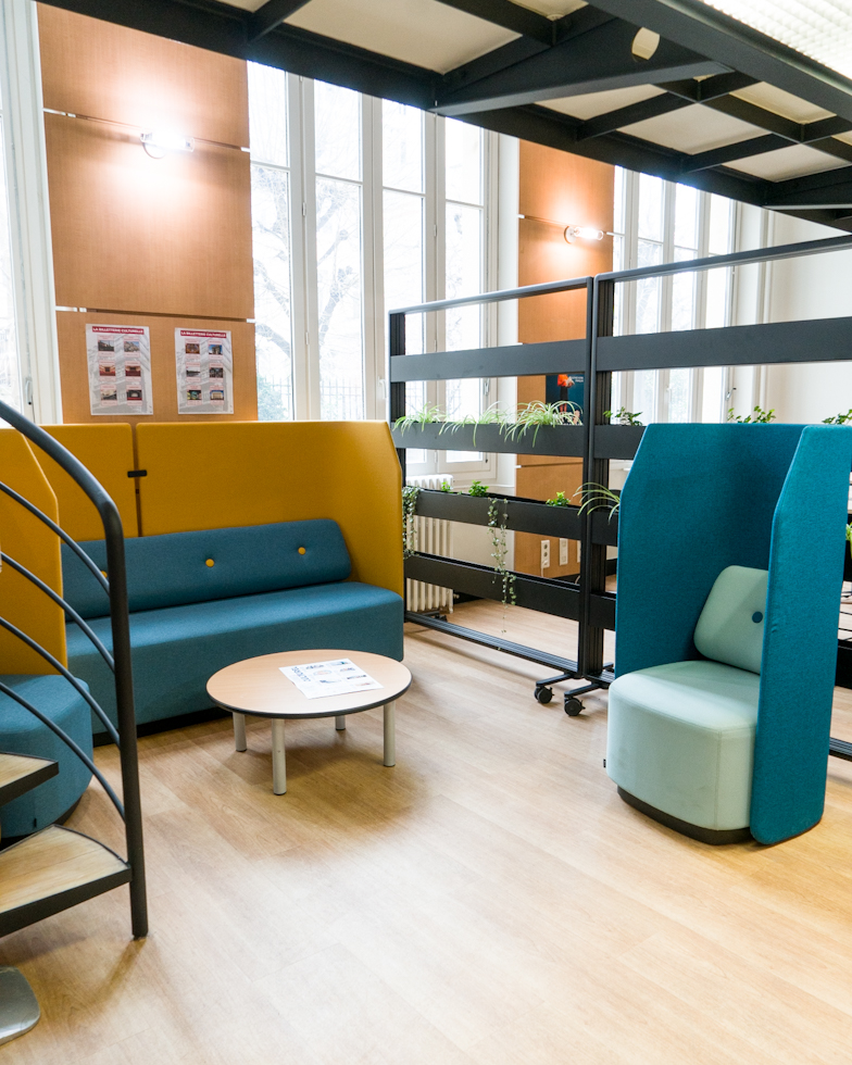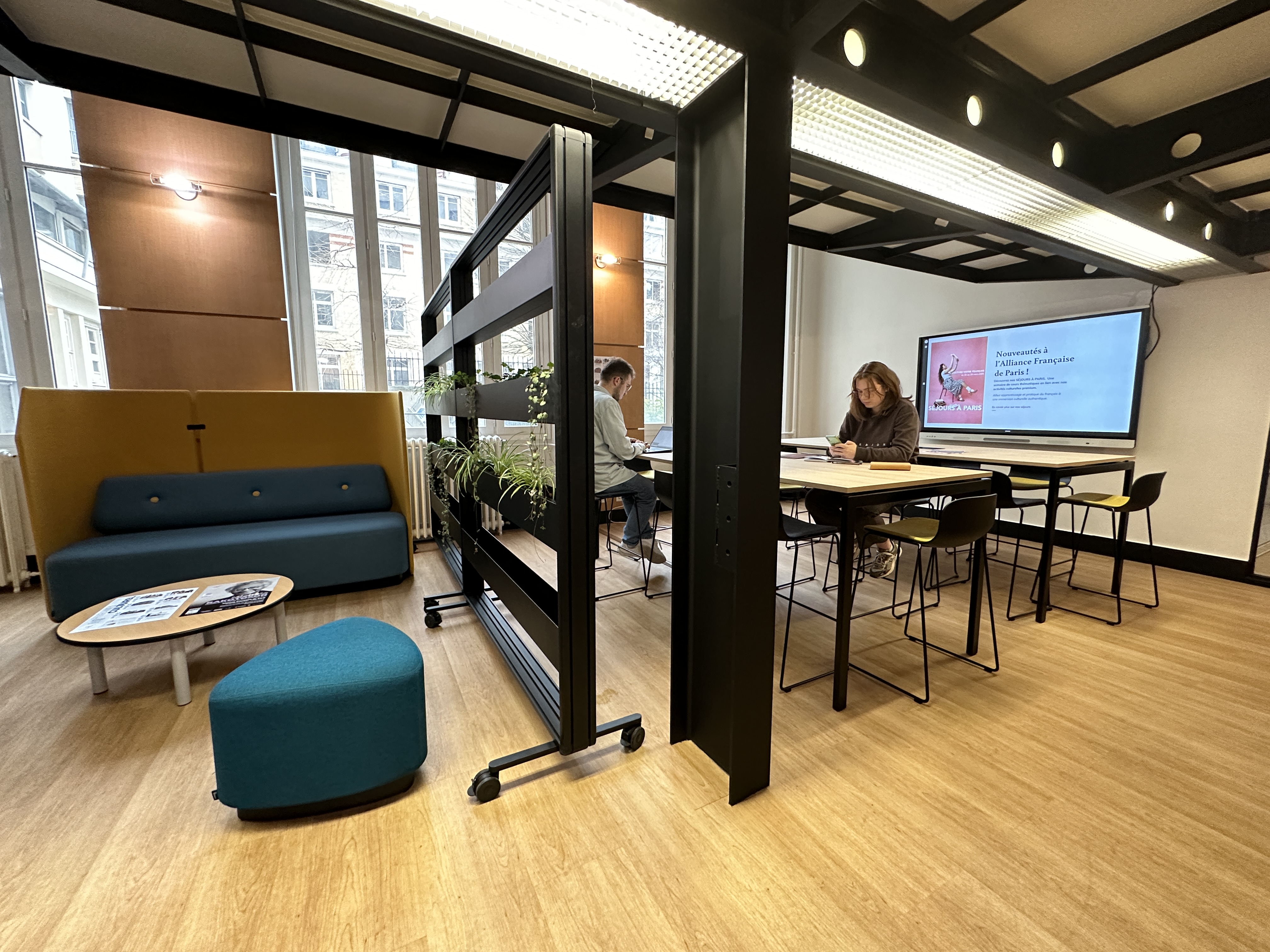 이 공간은 학생들이 기관 내에서 다른 이들을 만나고 휴식을 취할 수 있도록 추가적으로 알리앙스프랑세즈에서 마련한 장소이다.