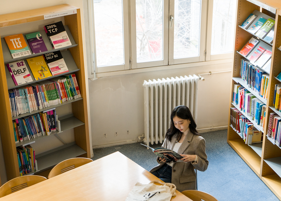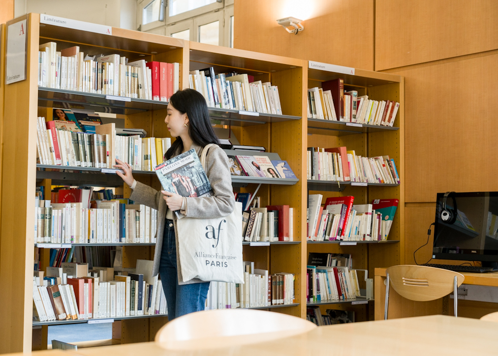 알리앙스 프랑세즈 파리에는 재학생들에게만 개방하는 큰 규모의 도서관과 멀티미디어 센터가 마련되어 있는데 이곳에서 프랑스어로 쓰인 책, 만화, 게임들 뿐 아니라 프랑스어 공부를 위한 온, 오프라인 자료를 만나볼 수 있다.