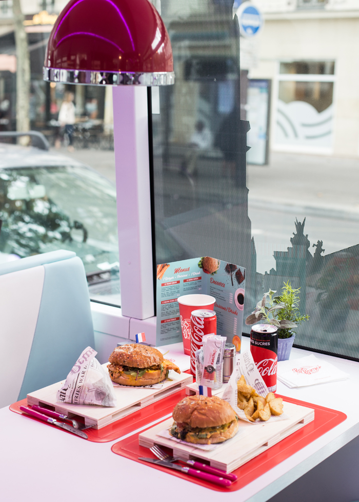 햄버거, 음료수, 디저트로 구성된 세트 주문과 단품 메뉴 주문이 가능하다. 주문을 마치고 파리 투어를 즐기다보면 주문한 음식이 세팅된다.