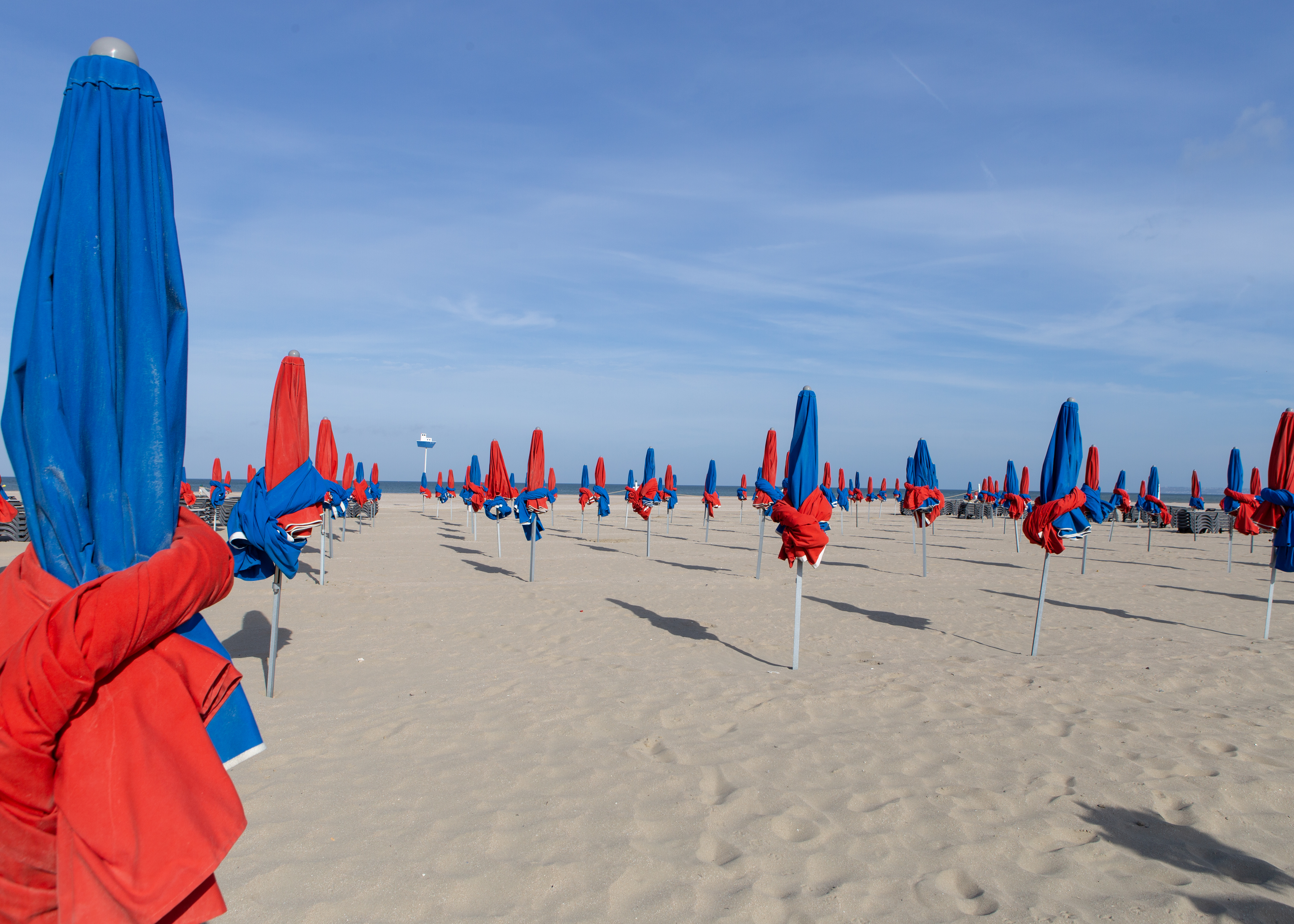 남부 니스 NICE의 해변 하면 떠오르는 건 파란색 줄무늬 파라솔일 것이다. 도빌의 대서양 해변에도 파라솔이 상징처럼 자리 잡고 있는데, 도빌의 또 다른 포토존 중 하나. 단, 접혀있을 때 더 멋있다.