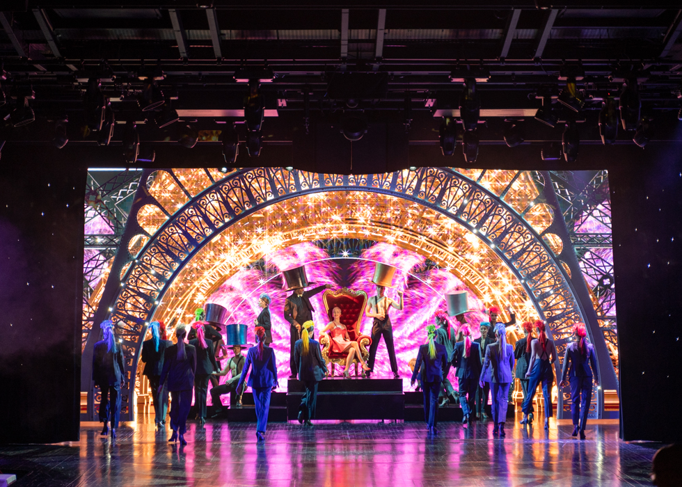 다섯개의 커다란 LED 스크린에 는 끝없는 계단과 통로, 파리의 거리, 화려하게 피어나는 꽃들이 상영되며 쇼에 화려함을 더해준다.