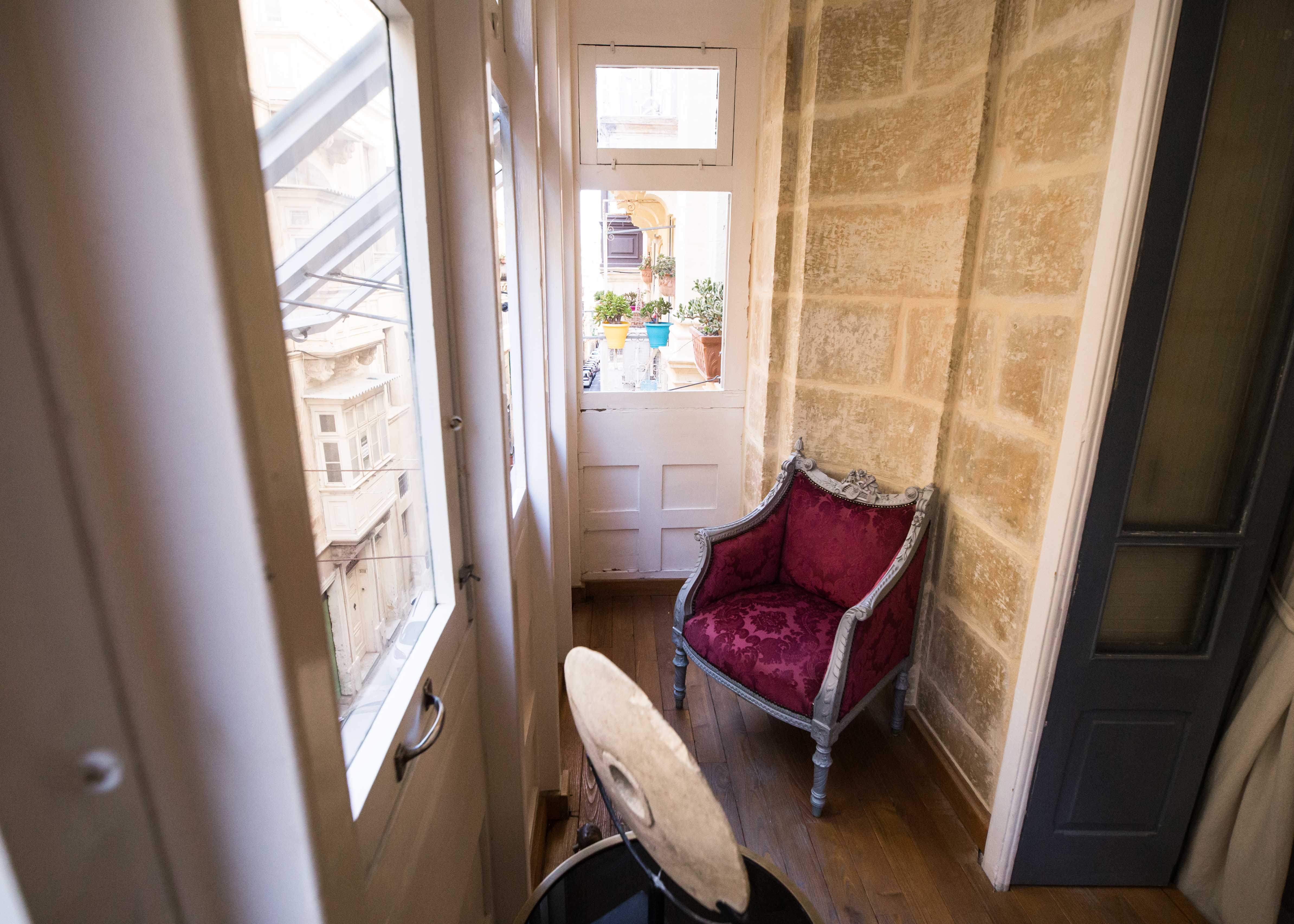 말티자는 또한 몰타식 발코니도 갖추고 있다. 나무 창이 여럿 나 있어 창문을 열면 선선한 바람과 여름의 활기찬 햇살이 방 안에 그대로 들어온다. 발코니는 세인트 우르술라 거리쪽으로 나 있어 커피를 마시며 조용히 거리를 관망할 수 있다.