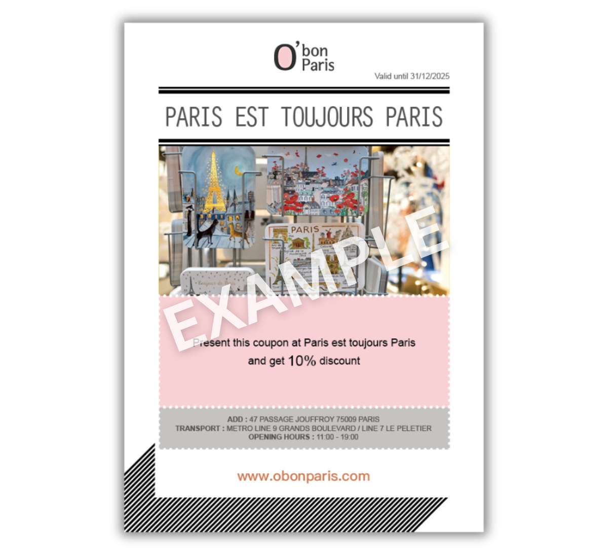 Localizada em um dos lugares mais encantadores e escondidos de Paris, o Passage Jouffroy, "Paris est toujours Paris" é uma loja de souvenirs onde você pode encontrar muitos presentes Made in France para levar para casa (como os tradicionais bérets e camisetas Saint-James). Paris est toujours Paris também abriu outra loja na bela área de Saint Michel, perto de Notre Dame.