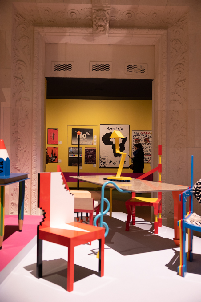 The exhibition is organised around three themes, a new political and cultural era, design in full swing and the look of the 1980s, reflecting the great telescope of thoughts and forms during this decade.