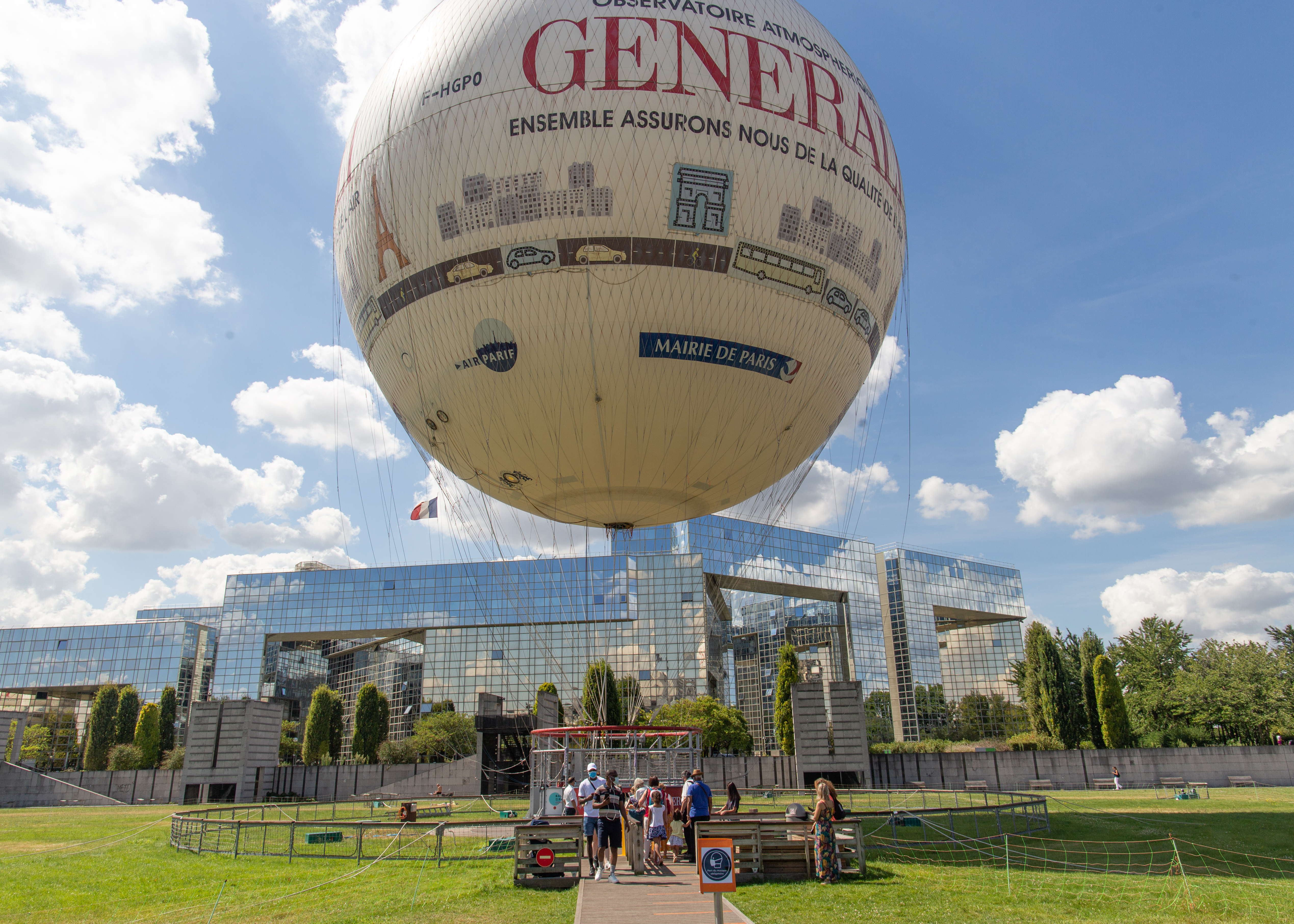 O balão de Paris, localizado no Parc André Citroën, oferece uma das experiências de observação mais únicas em Paris. Ao subir em um balão de ar quente, você pode desfrutar de uma vista de 360 graus de toda a cidade, criando uma experiência inesquecível. Este balão não é apenas uma ferramenta de turismo, mas também um projeto ambiental que monitora a qualidade do ar de Paris em tempo real. Ao subir, você se sentirá como se estivesse voando, com Paris se desenrolando aos seus pés. Seja de dia ou à noite, este é um local fantástico para apreciar a vista panorâmica de Paris.